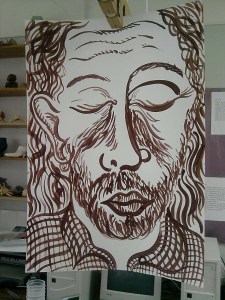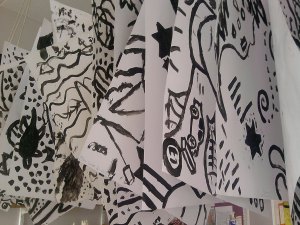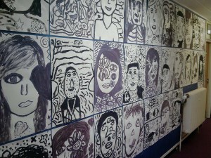 This was the last day of the Clemente’s. I had two year 8 groups one after the other, first thing this morning. The first group I started off using the paintings I had made. I told them that I had been doing some expressive self-portraits and that this is how I had made them and why there were turtles in them and so on. Off we went and the pictures the children made were quite close to the models I showed them. There were even some turtles, ‘because I like them too’. I showed them the Clemente at the end and explained that I had been influenced by these pictures. I asked them if they though that seeing the Clemente early would have changed what the did and some said that it would have made it easier, they would have had more ideas from them and so on. More or less the same as was said yesterday by the group that saw the Clementes but not mine about my stuff. Interesting.