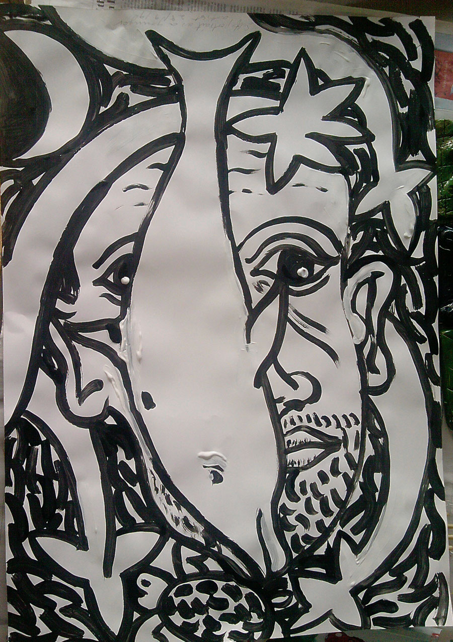 This was the last day of the Clemente’s. I had two year 8 groups one after the other, first thing this morning. The first group I started off using the paintings I had made. I told them that I had been doing some expressive self-portraits and that this is how I had made them and why there were turtles in them and so on. Off we went and the pictures the children made were quite close to the models I showed them. There were even some turtles, ‘because I like them too’. I showed them the Clemente at the end and explained that I had been influenced by these pictures. I asked them if they though that seeing the Clemente early would have changed what the did and some said that it would have made it easier, they would have had more ideas from them and so on. More or less the same as was said yesterday by the group that saw the Clementes but not mine about my stuff. Interesting.