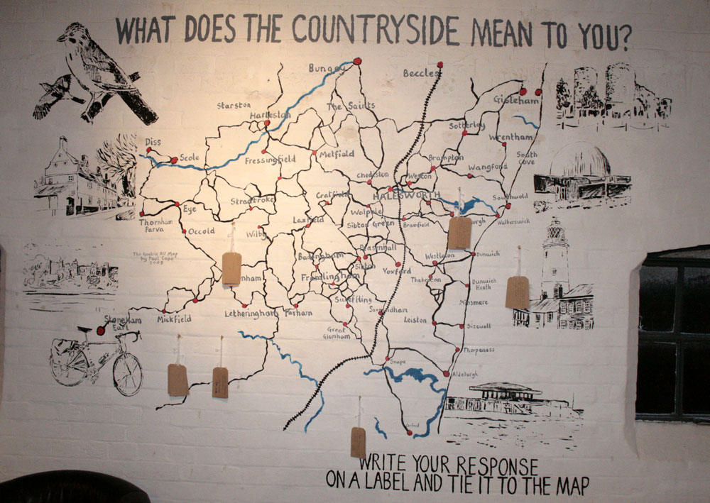 I spent some of the half term painting a large map on the wall of the Cut gallery and arts centre in Halesworth as part of the Culture of the Countryside exhibition which is on at the moment.