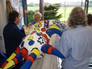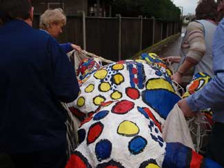 When it came to putting together the parts that it became apparent that I had badly miscalculated the size of the thing and there was no way it was ever going to go in any car in the car park. The day was saved by Mrs Lewis who had got rather involved in the making of the thing. She told me her son is a builder and has a lorry that we could borrow. Mrs Lewis had got involved because one of her charges had become very interested in the plaster bandage that we put on to strengthen the sculpture. She and a small crack team had spent most lunchtimes working on building the sculpture up. In the end we took Henrietta as she was christened up to Norwich in the lorry and carried her up the stairs in an old football net.