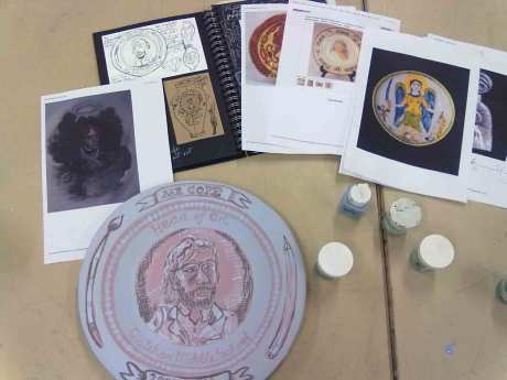 The year eights are working on their big, life size paintings about them selves. They are going well and most of them seem to be enjoying the project. Some have found the scale of the things a bit difficult and this weeks theme was how to get small things onto big things, how to deal with scale and how to get small scale things onto these big images. I showed them the Paladino Dream paintings, not because they are directly relevant but to show them the idea of making something on a separate material or paper with a view to building it on later. We also experimented with stencils and a bit of screen printing on paper and onto the big paintings.
