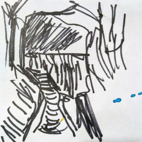 Six quick and scribbly drawings to document a windy walk across Millennium Green to the Cut. I had for gotten a pencil, so these are done with an old Sharpie I had in my pocket. Part of a habit of documenting walks with little drawings. Usually they end up in a sketchbook.