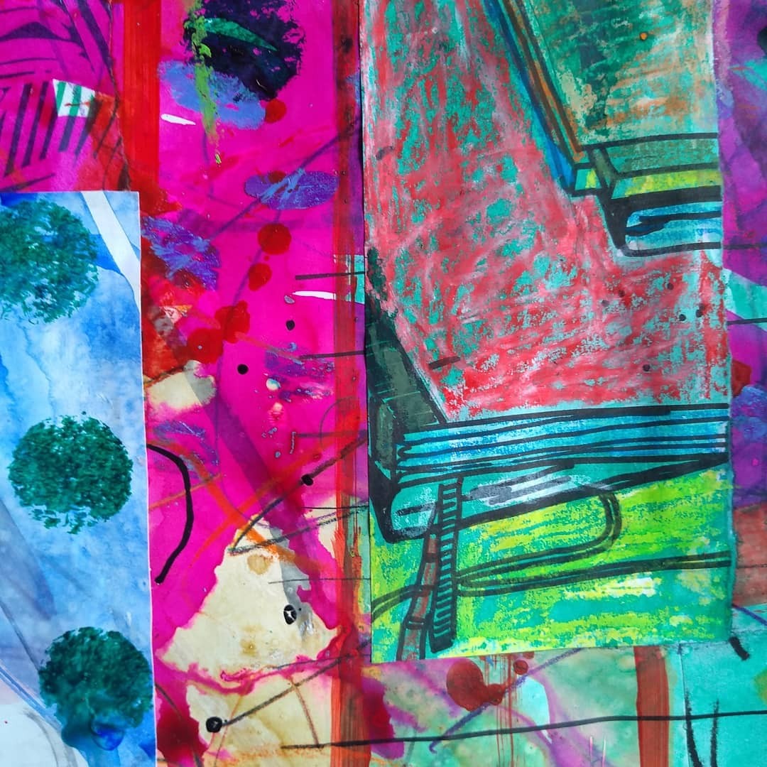 There’s a snack and a stack in there somewhere. Further lockdown musings. Playing with collage, cutting and keeping, mark making and colour, material interaction and so on. Keeping myself amused.
