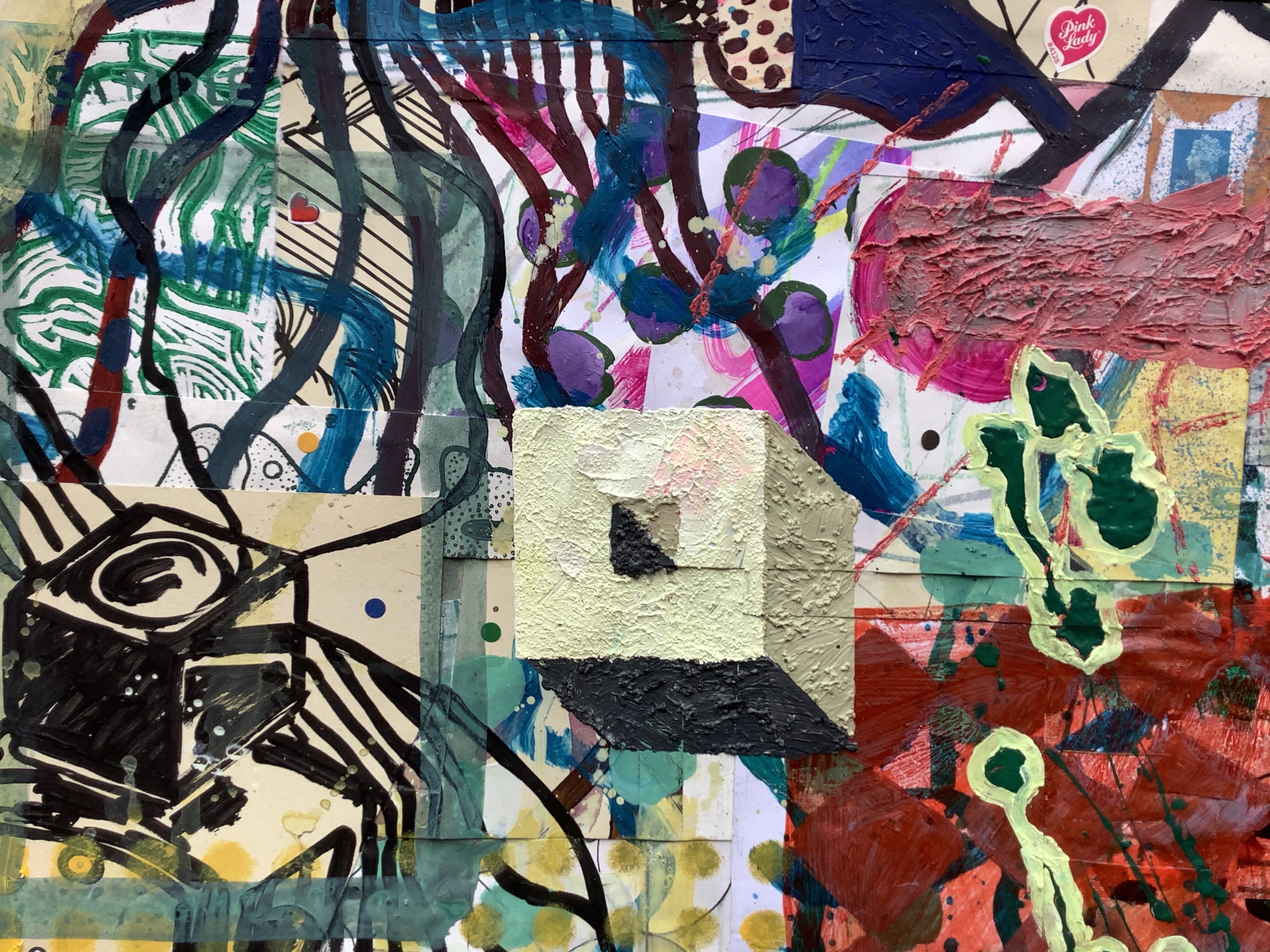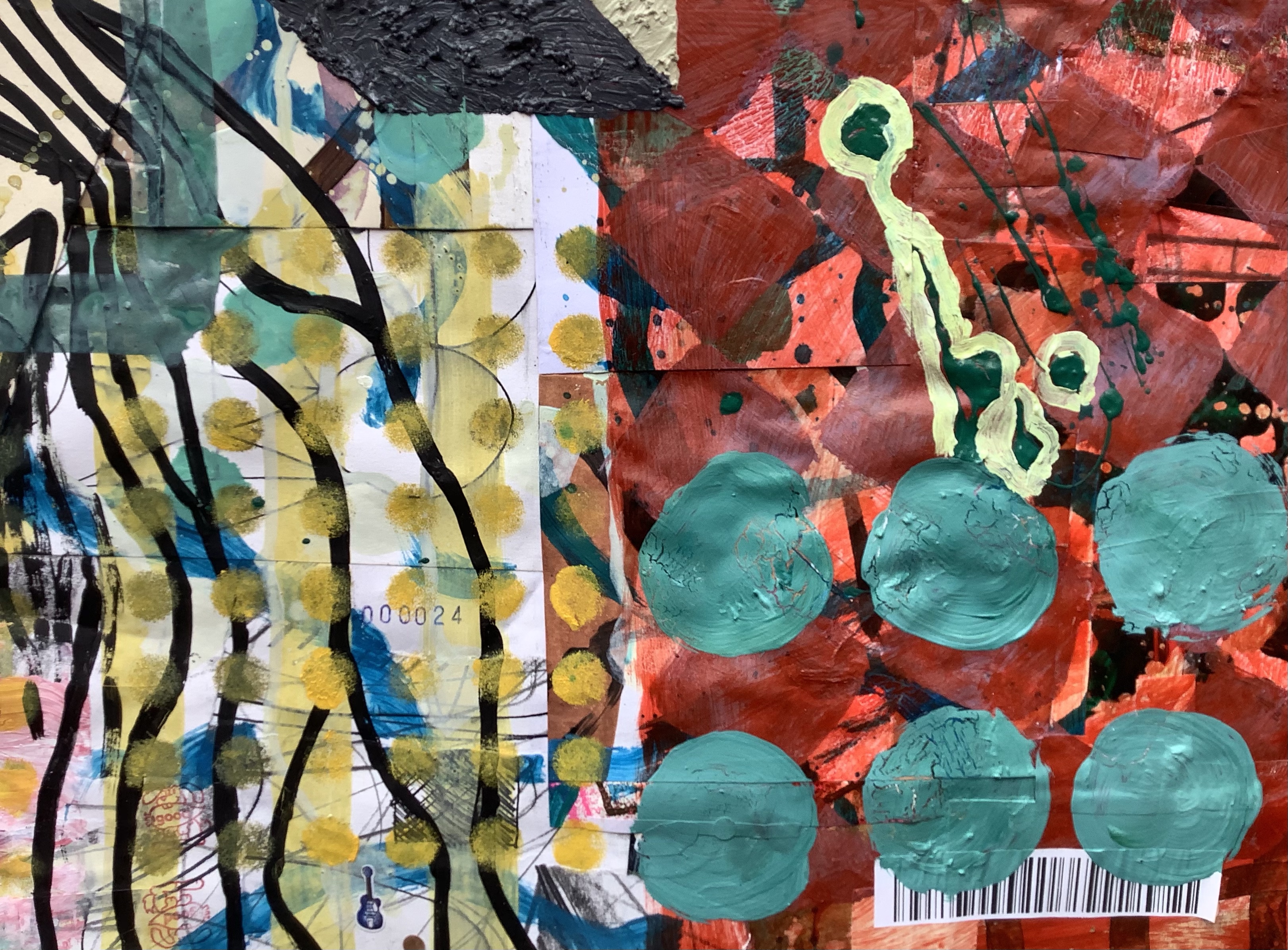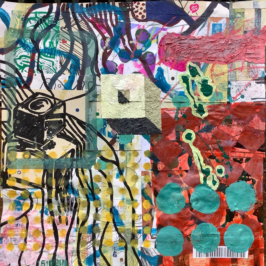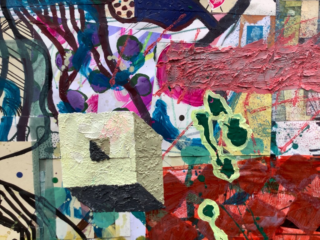 Mixed media on collaged paper patchwork