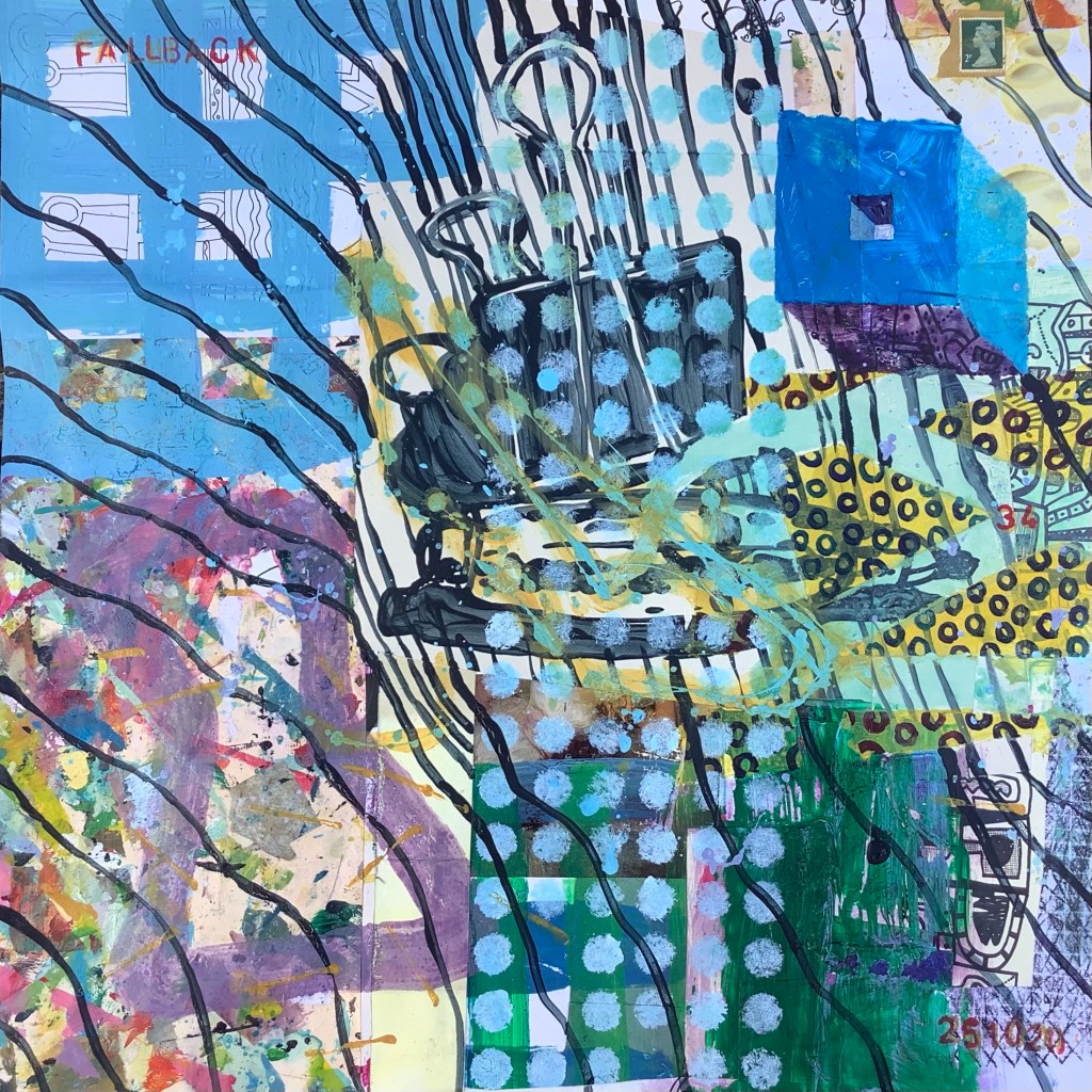Mixed media on collaged paper patchwork. 46cm x 46cm.