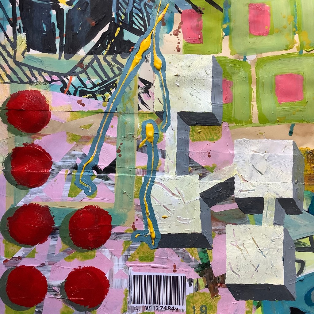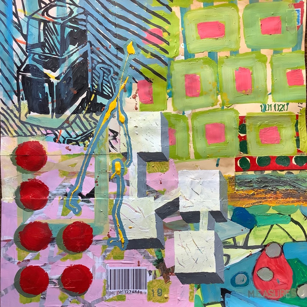Mixed media on collaged paper patchwork