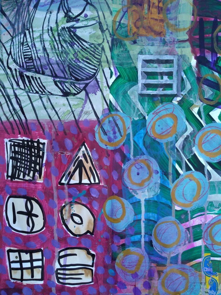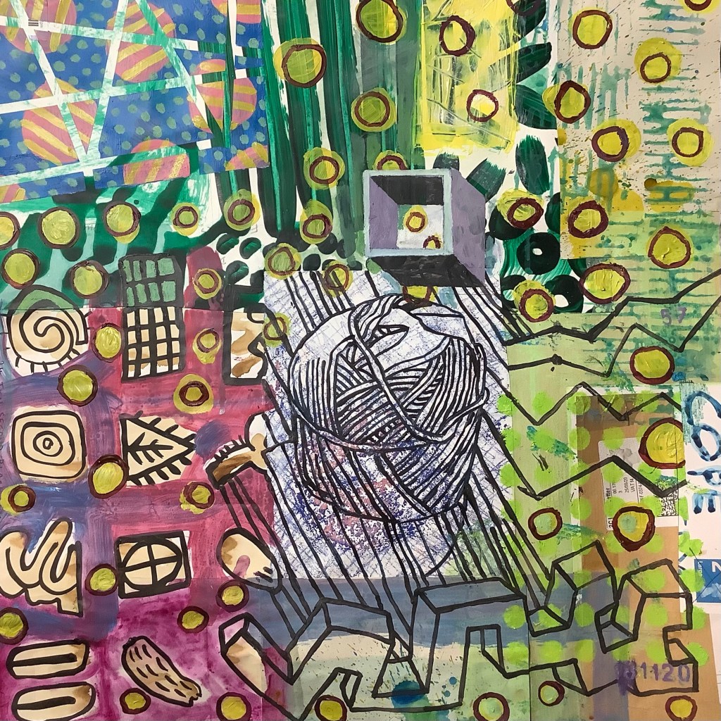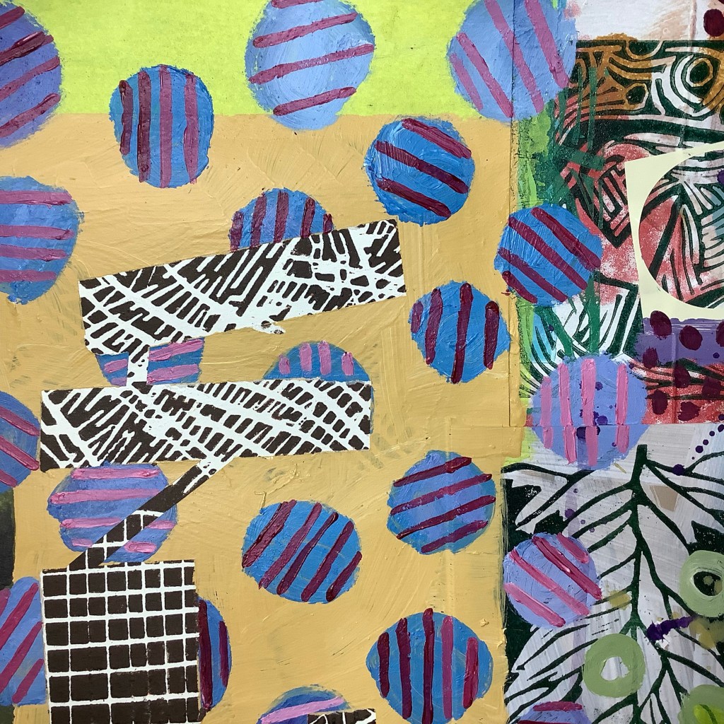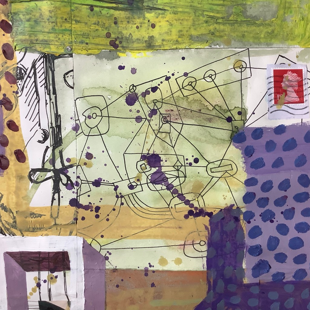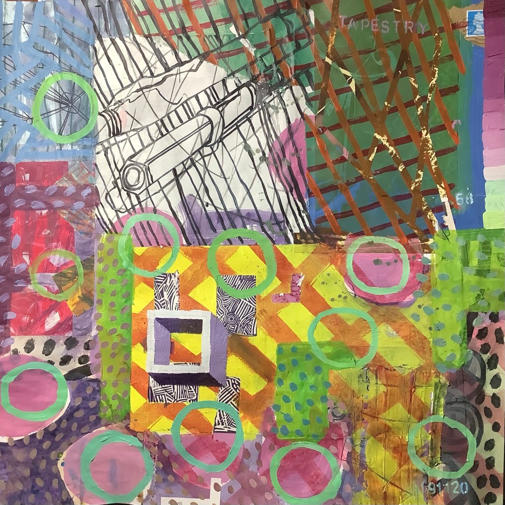 Mixed media on collaged paper patchwork. 47cm x 47cm.