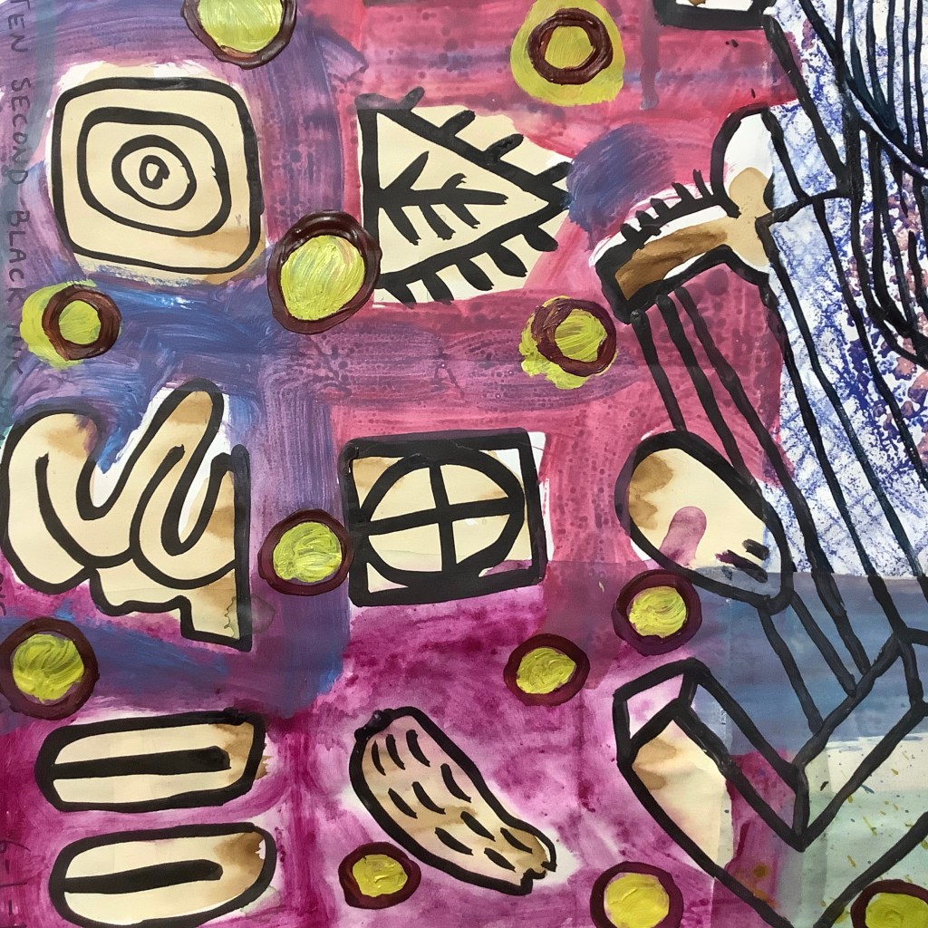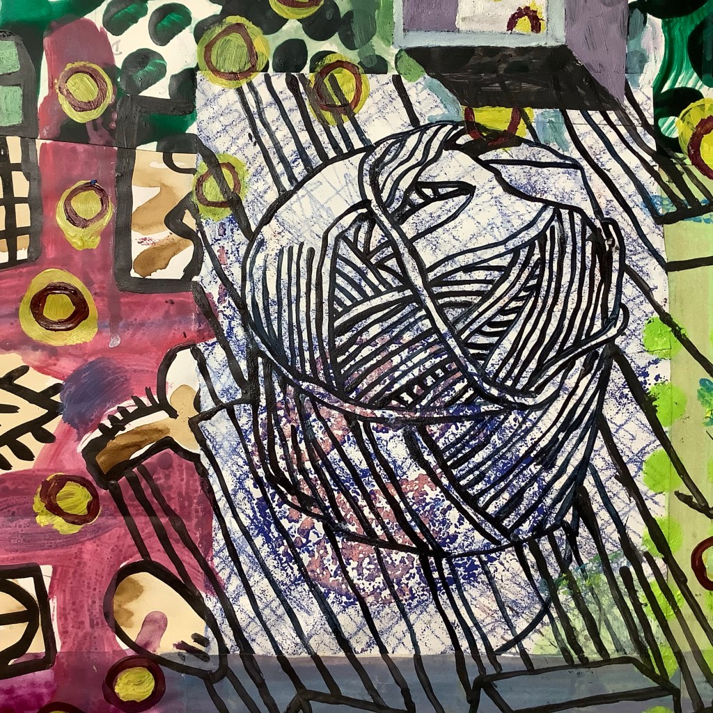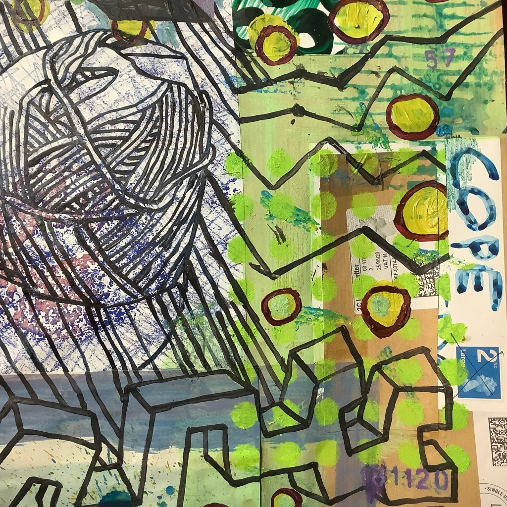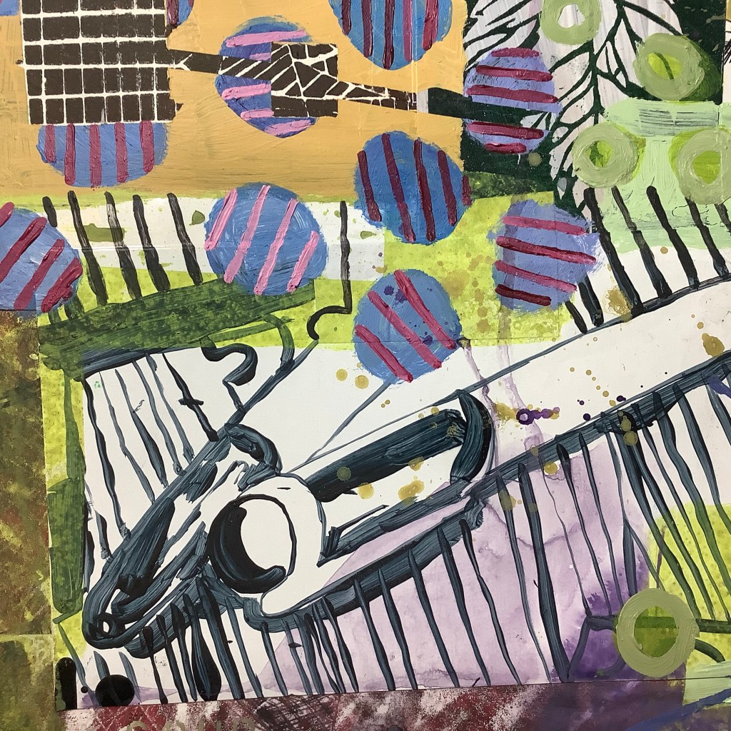 Mixed media on collaged paper patchwork. 47cm x 47cm.