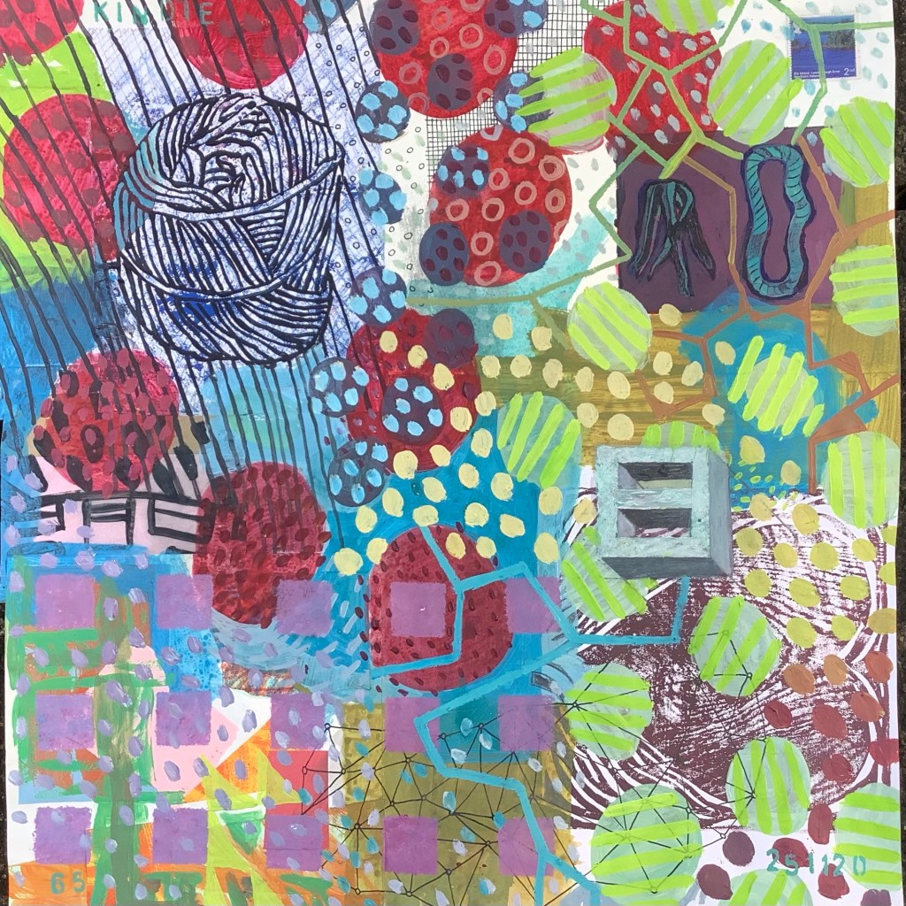 Mixed media on collaged paper patchwork. 46cm x 46cm