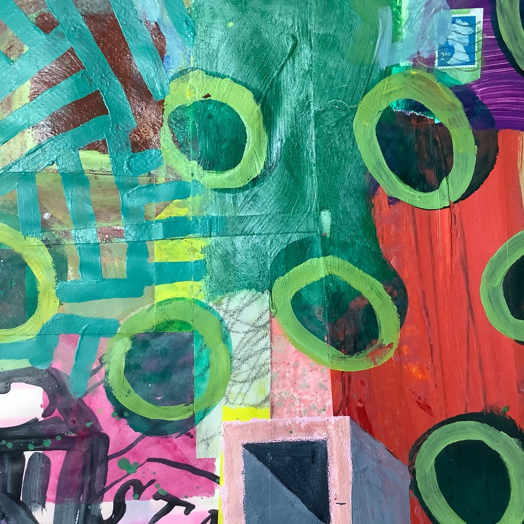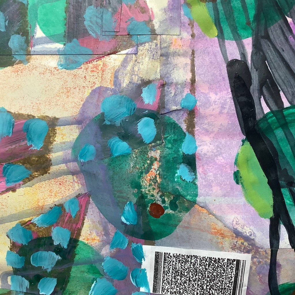 Mixed media on collaged paper patchwork. 46cm x 46cm