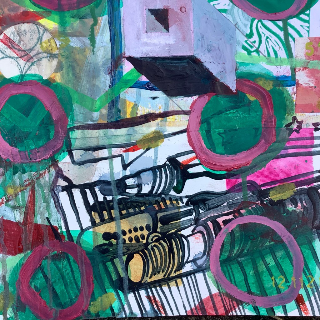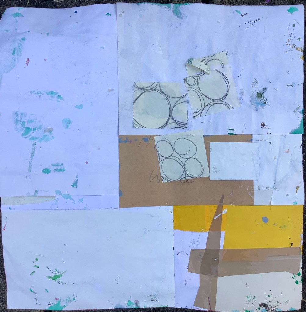 Mixed media on collaged paper patchwork. 46cm x 46cm