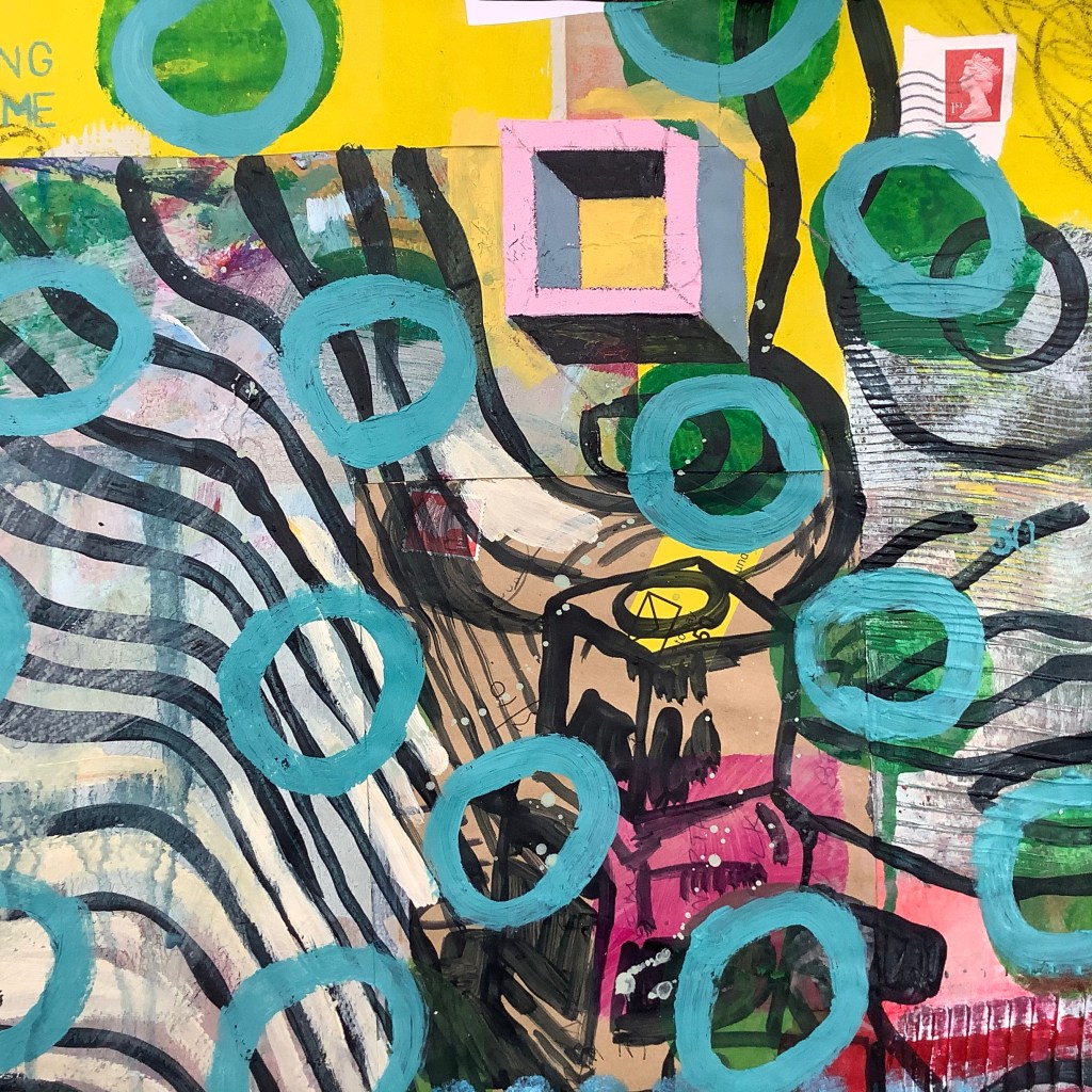 Mixed media on collaged paper patchwork. 46cm x 46cm