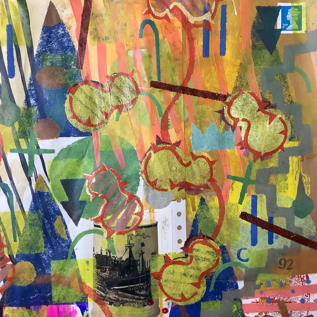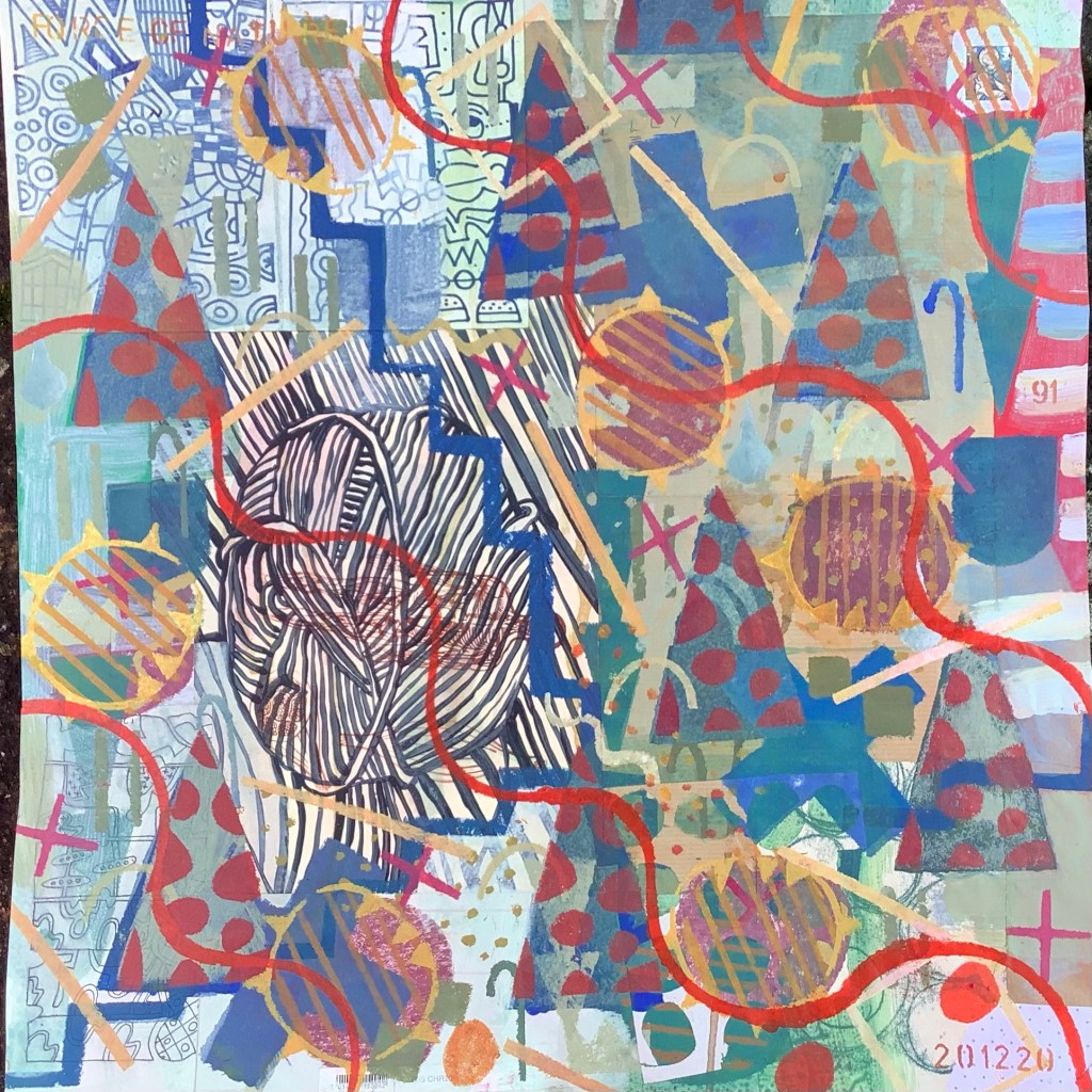 Mixed media on collaged paper patchwork 46cm x 46cm