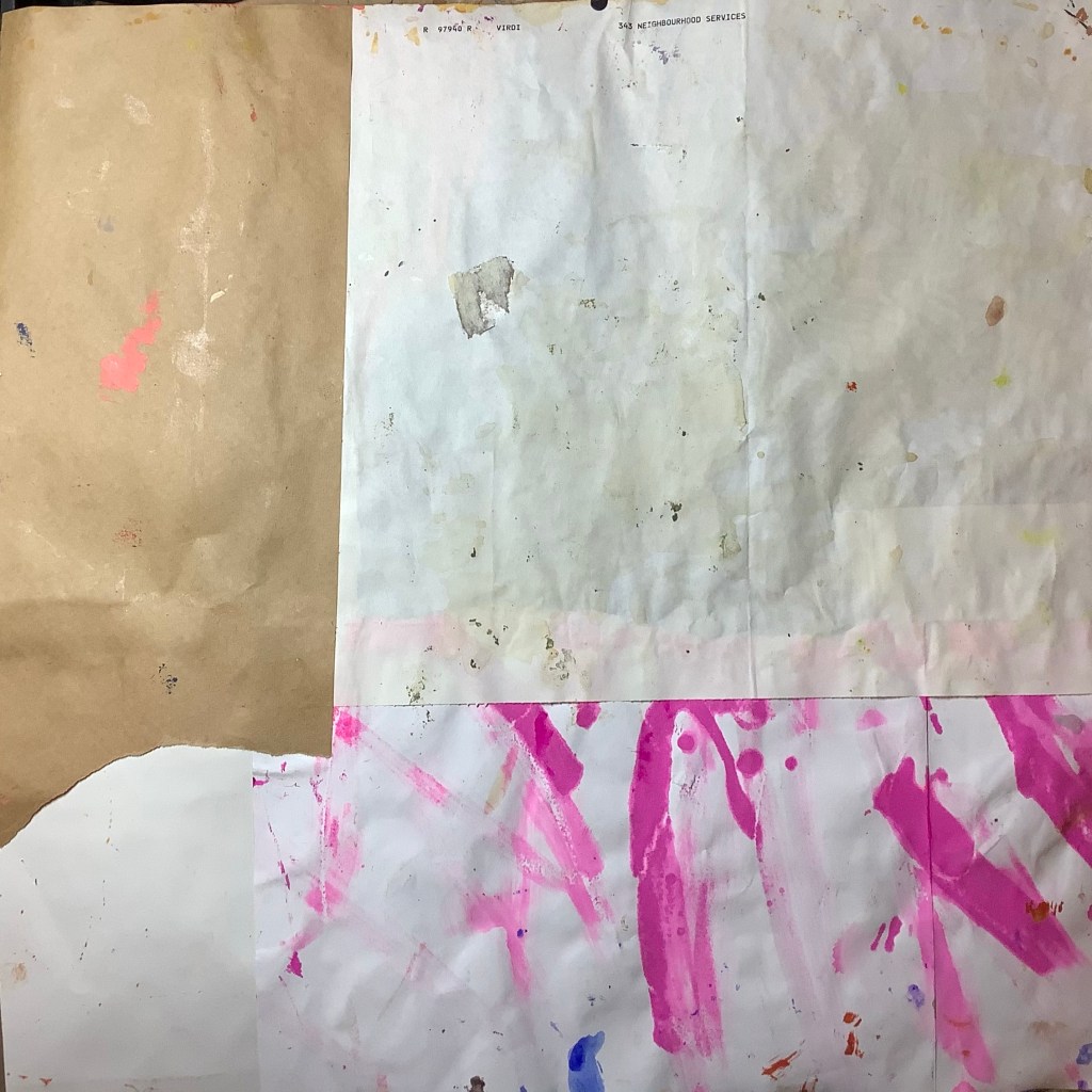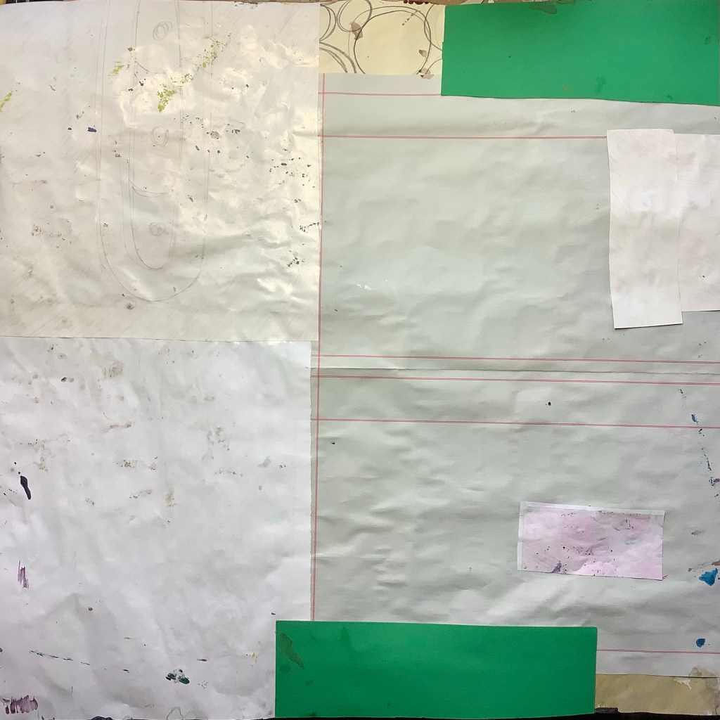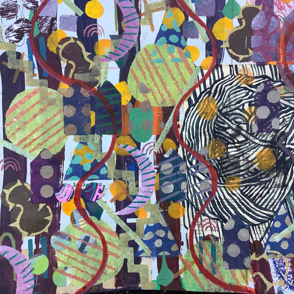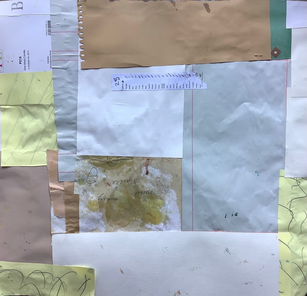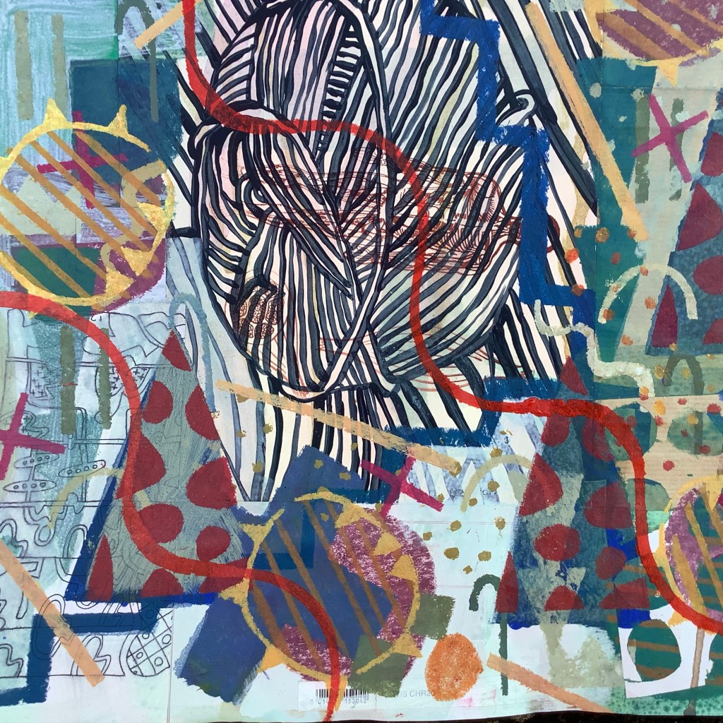 Mixed media on collaged paper patchwork