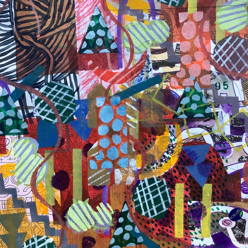 Mixed media on collaged paper patchwork