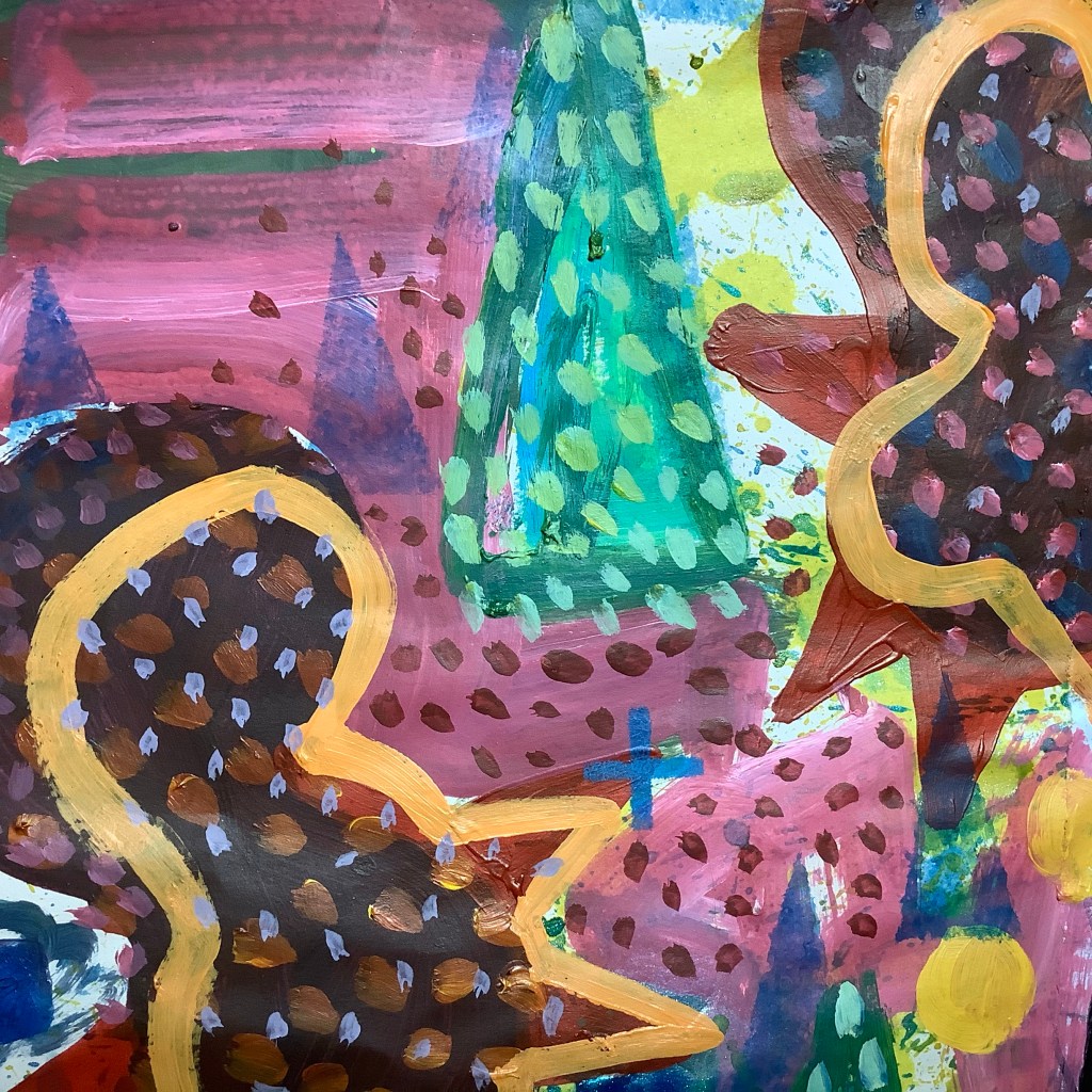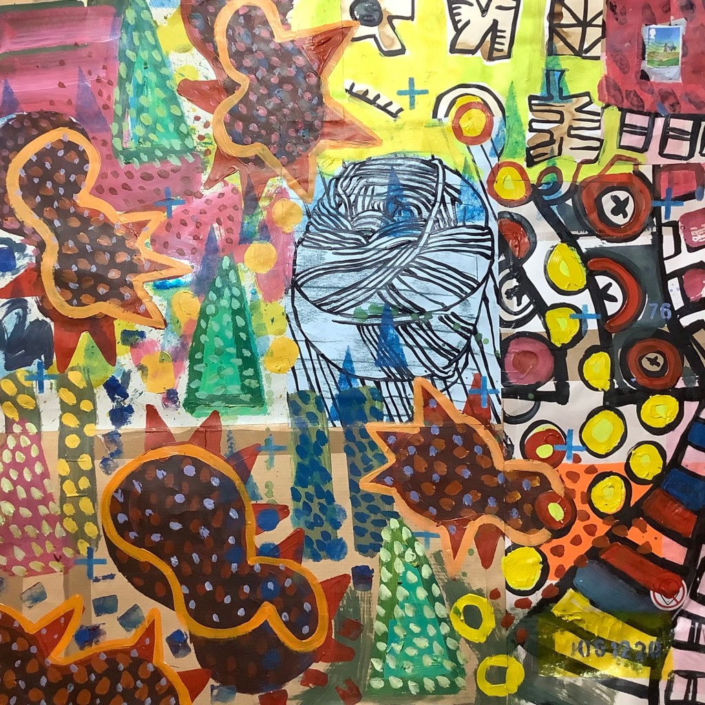 Mixed media on collaged paper patchwork 46cm x 46cm