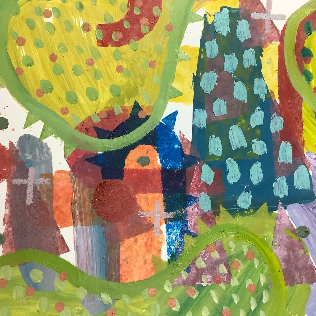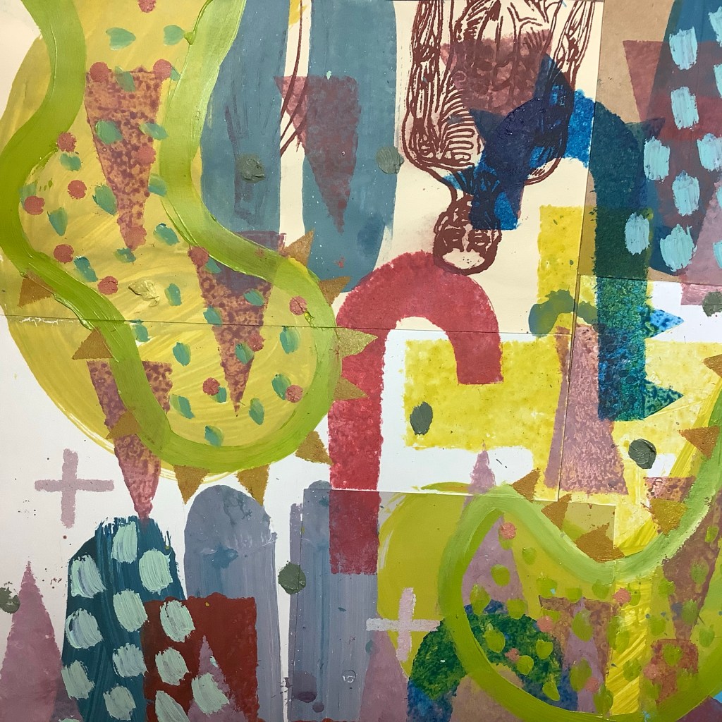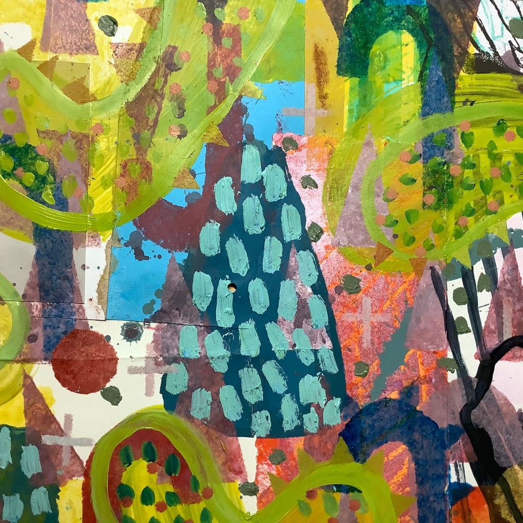 Mixed media on collaged paper patchwork 46cm x 46cm