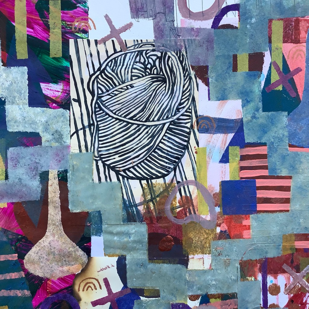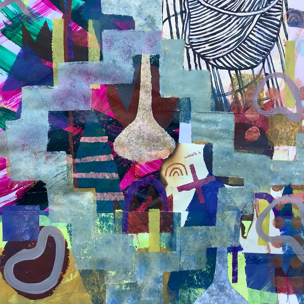 Mixed media on collaged paper patchwork 46cm x 46cm
