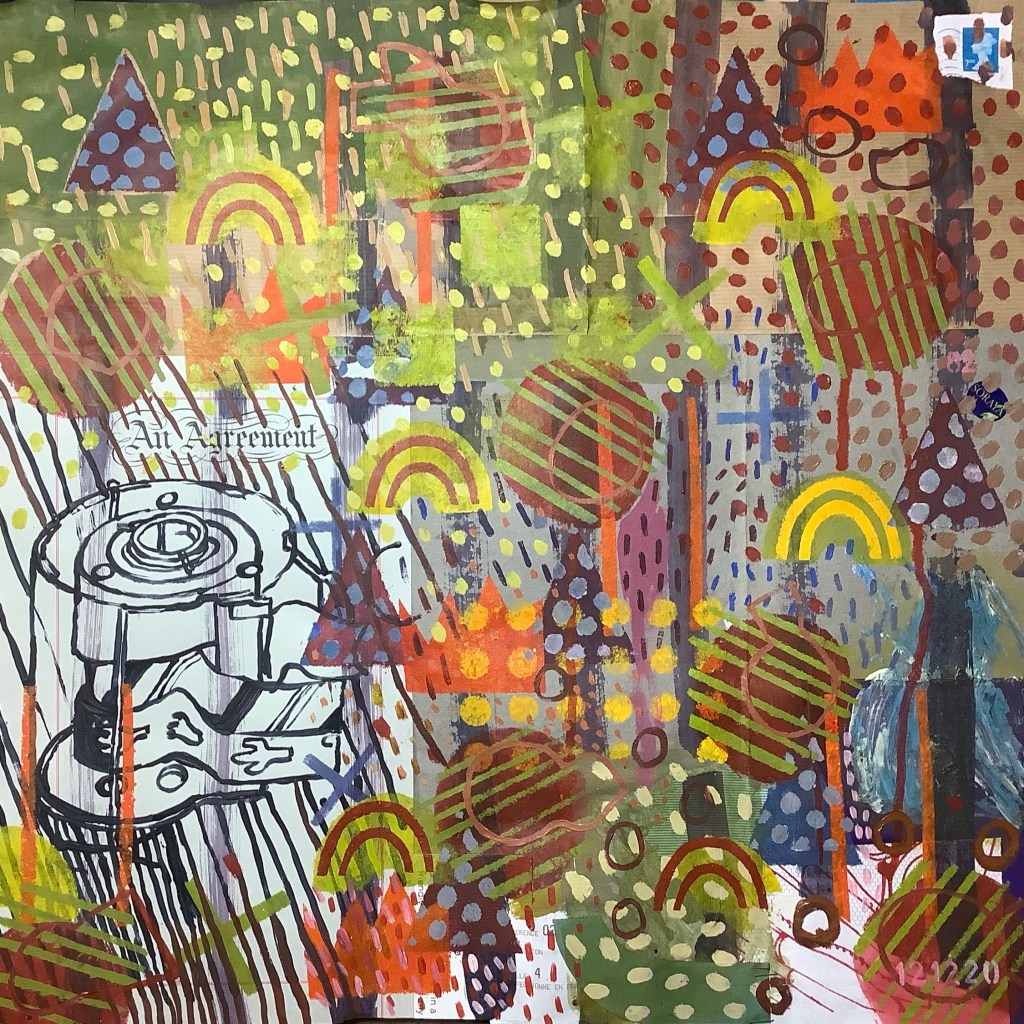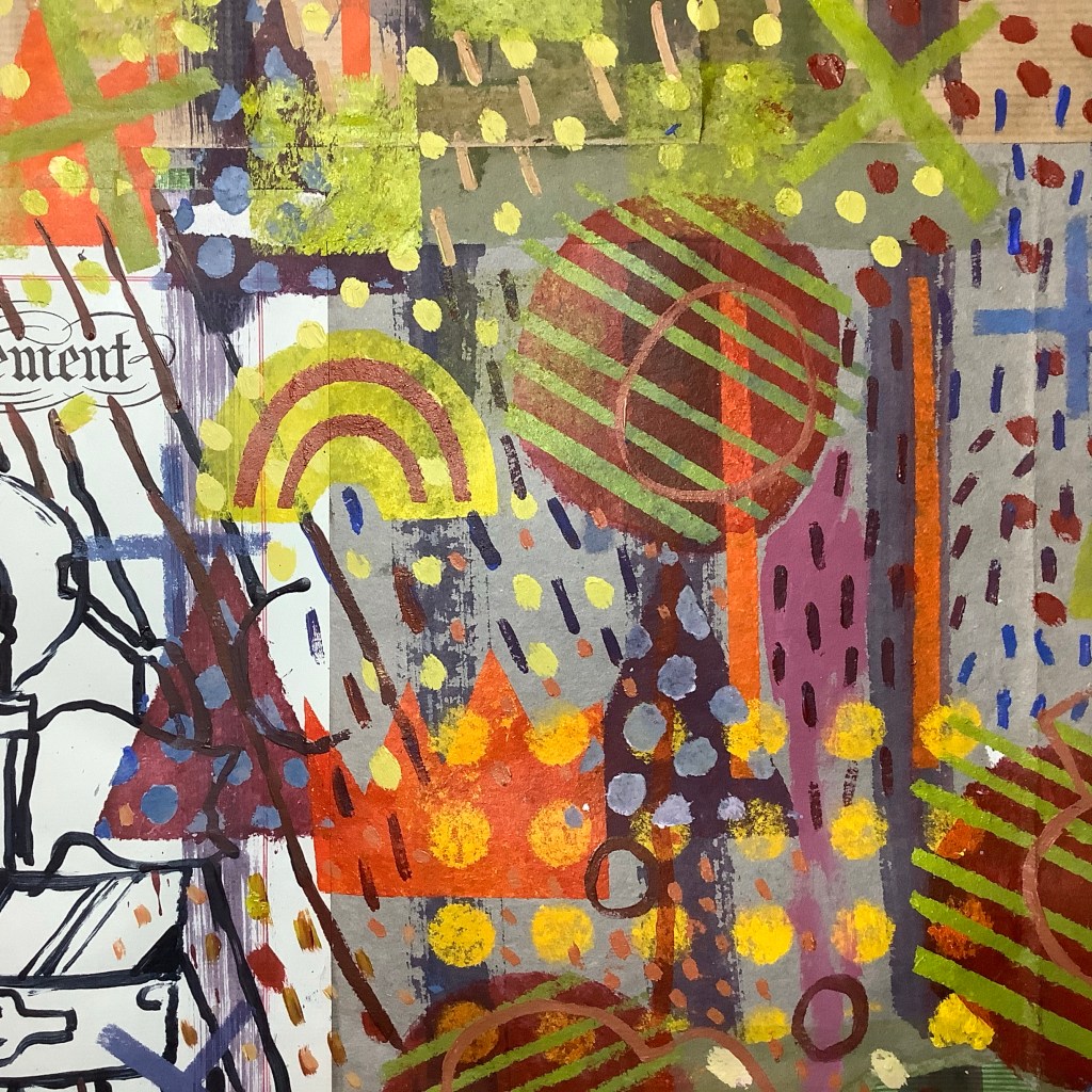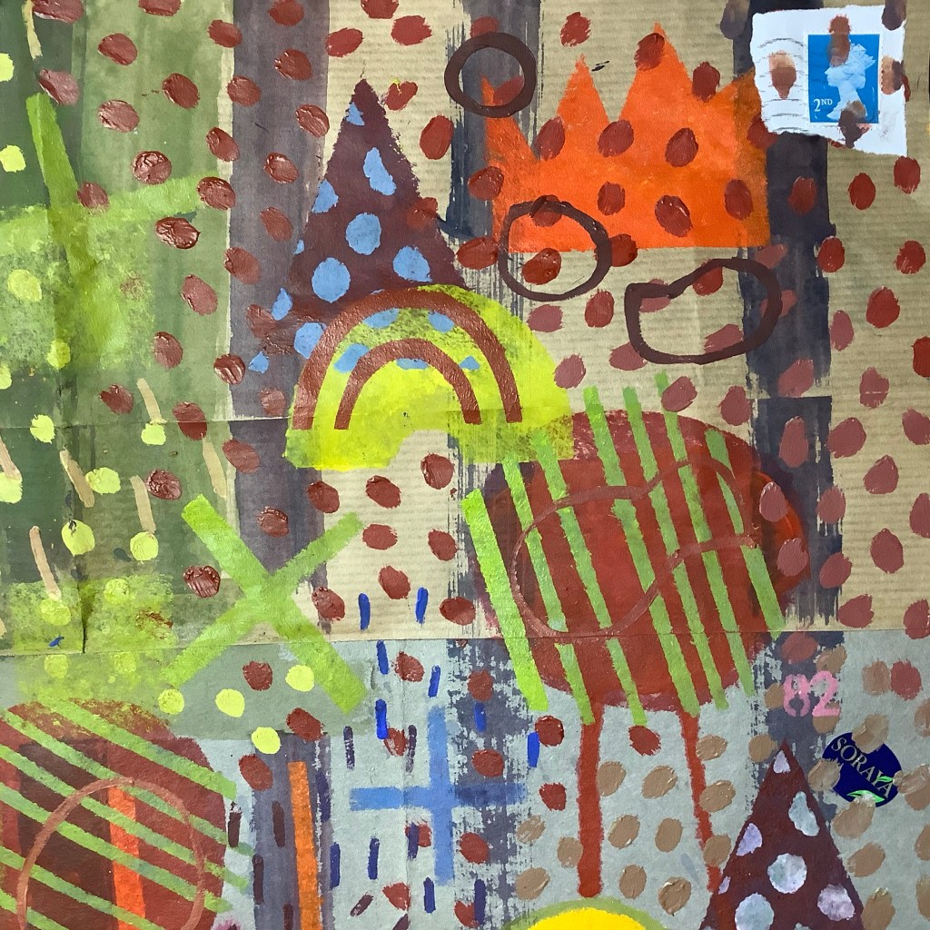 Mixed media on collaged paper patchwork 46cm x 46cm