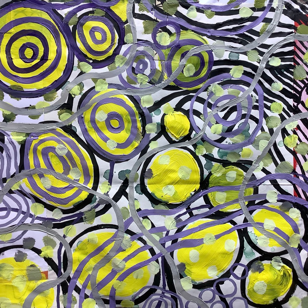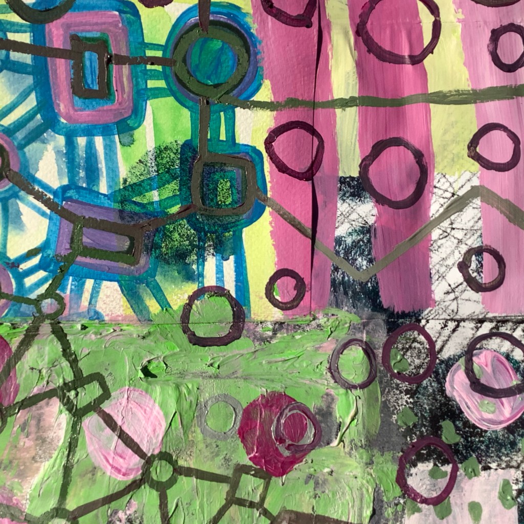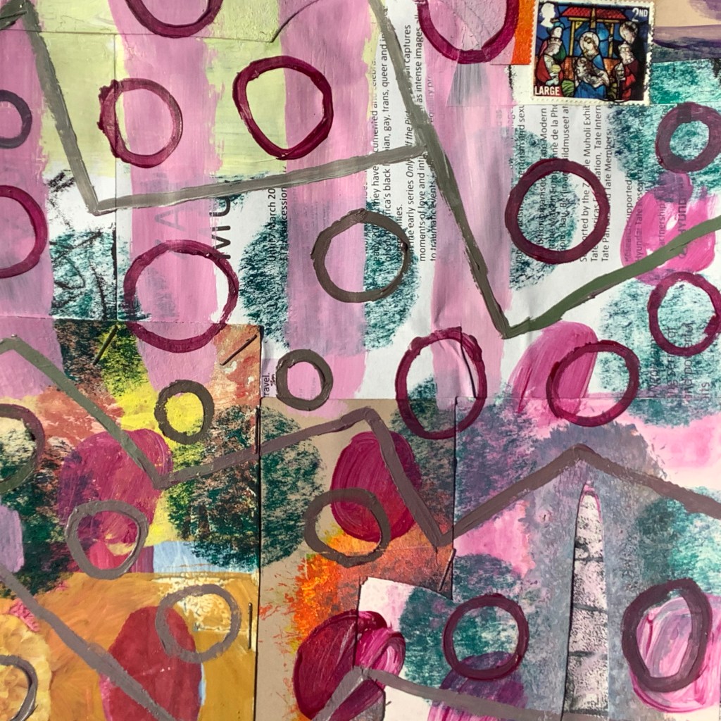 Acrylic on mixed collage paper patchwork 48cm x 48cm. A bit of psychedelia in response to @hampstead_school_of_art #getcreativehsoa