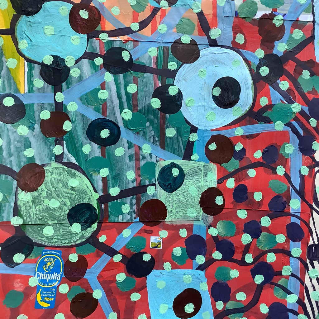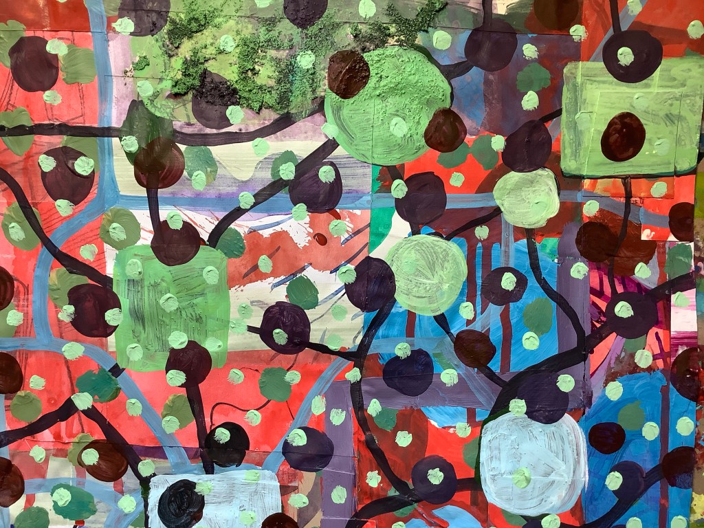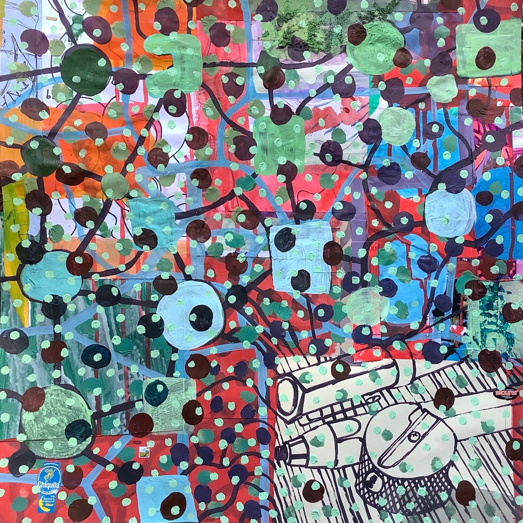 Acrylic paint on collaged paper patchwork 48cm x 48cm