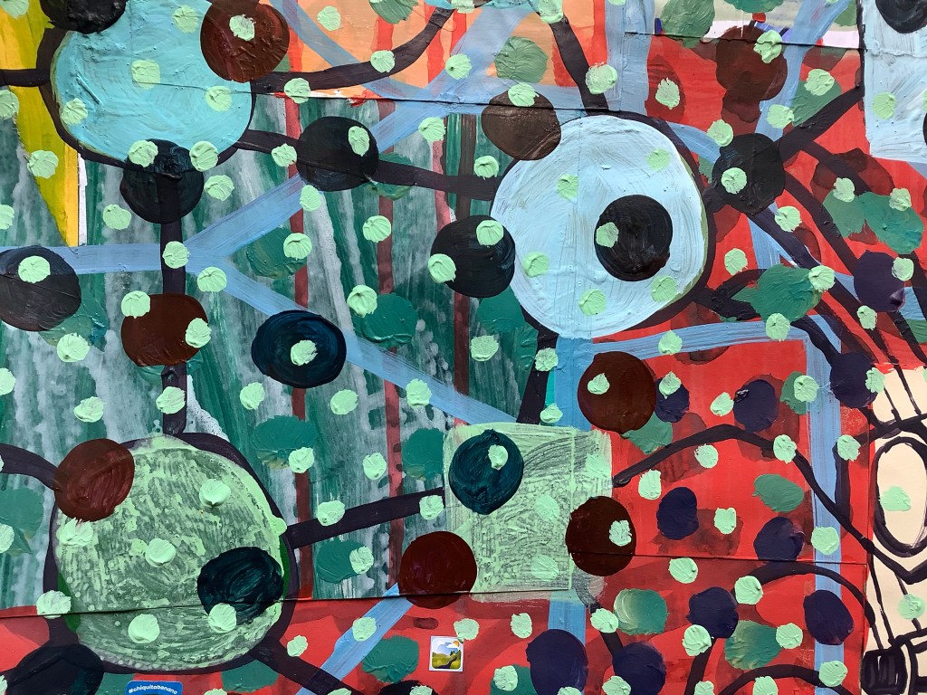 Acrylic paint on collaged paper patchwork with old drawings 48cm x 48cm