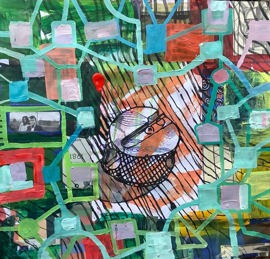 Acrylic paint on collaged paper patchwork 48cm x 48cm