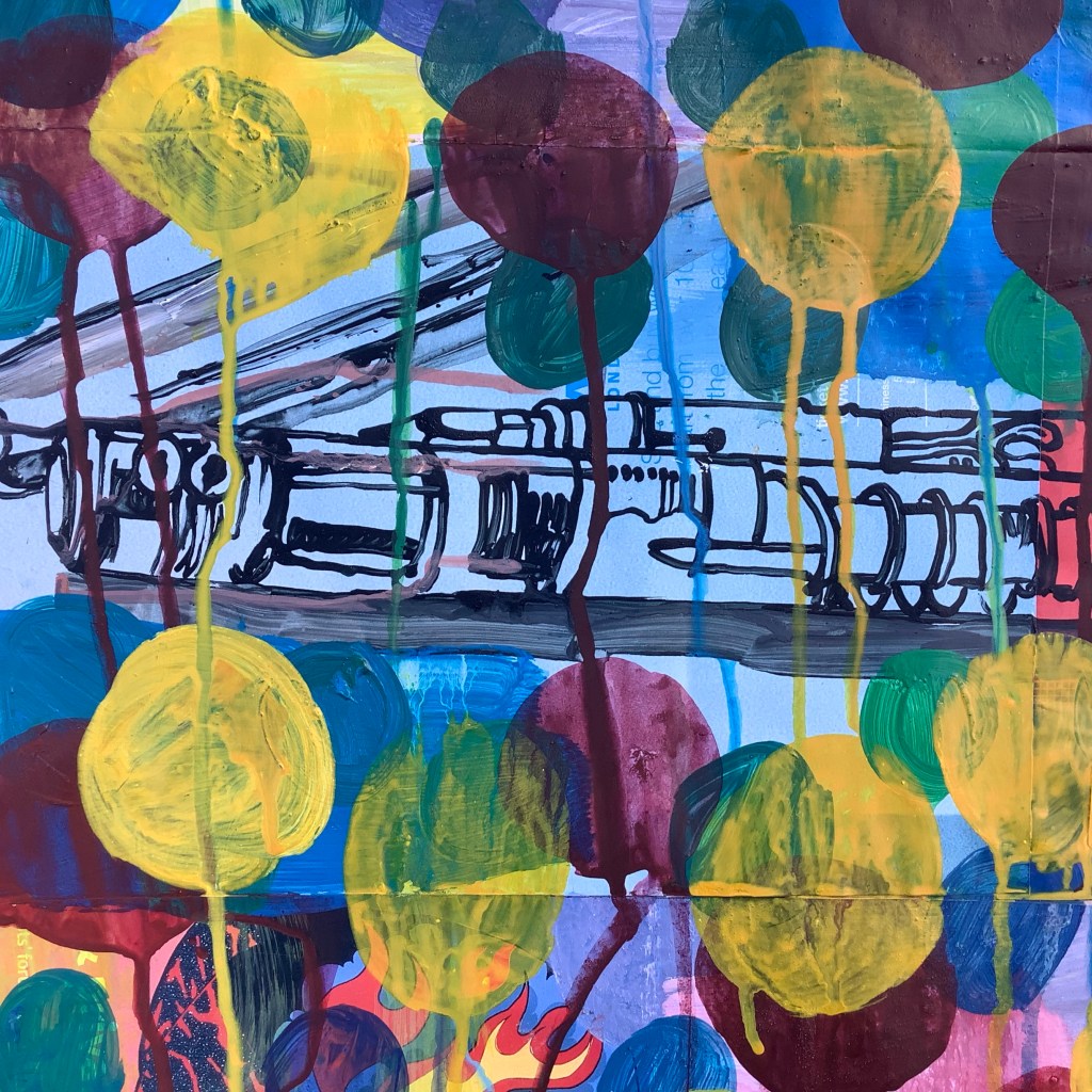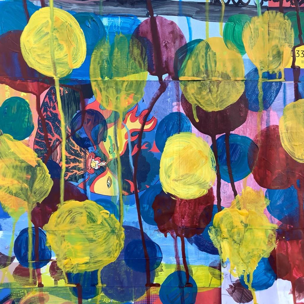 Acrylic paint on collaged art magazine paper 48cm x 48cm