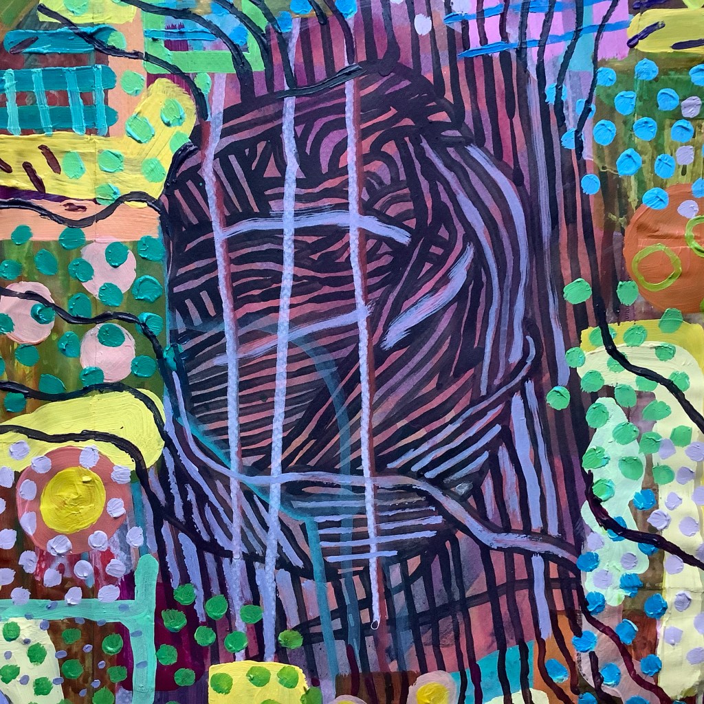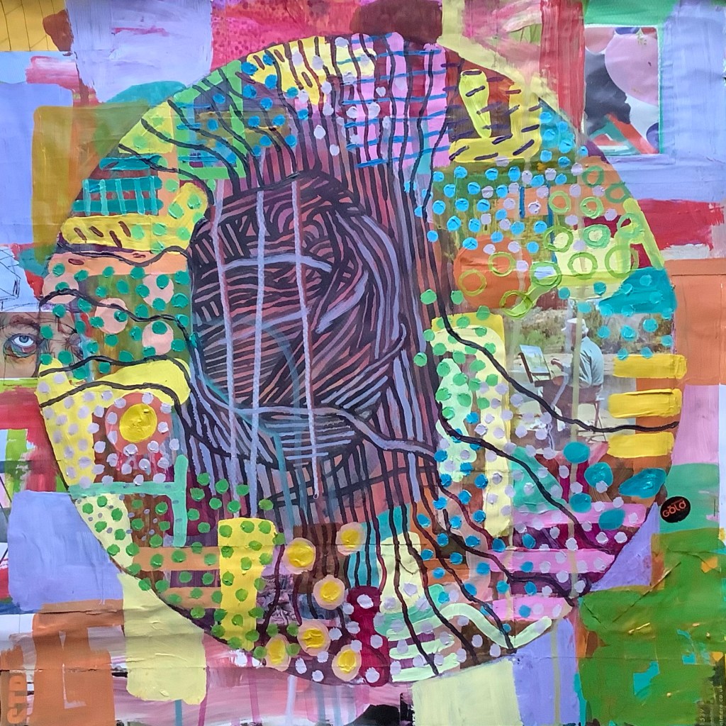 Acrylic paint on collaged paper patchwork 46cm x 46cm