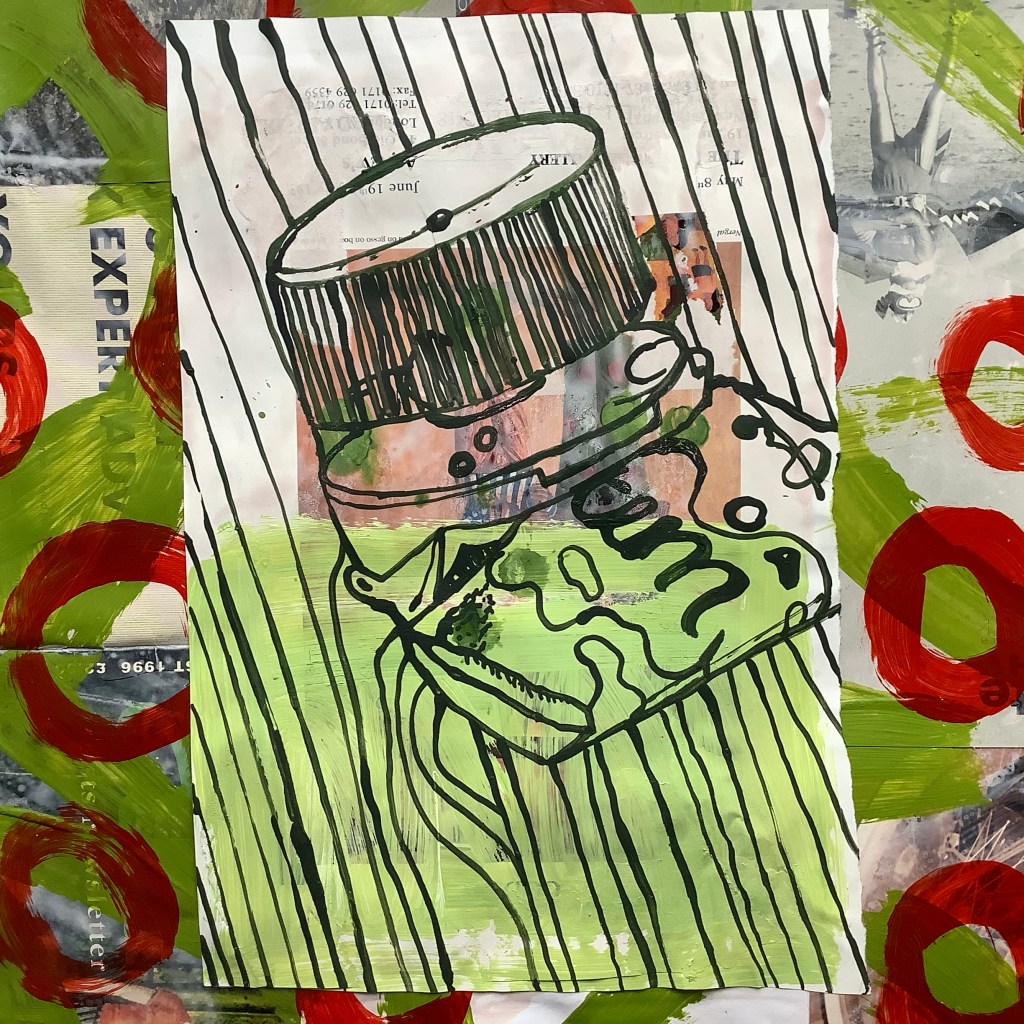 Acrylic paint on collaged paper patchwork 48cm x 48cm