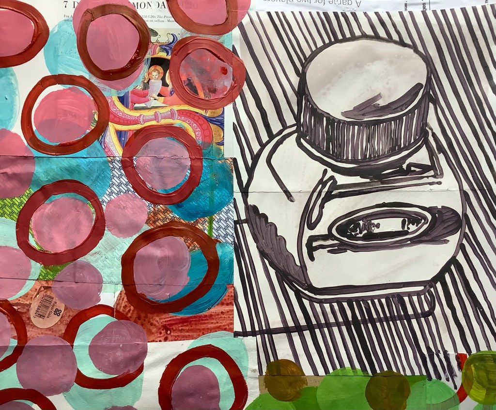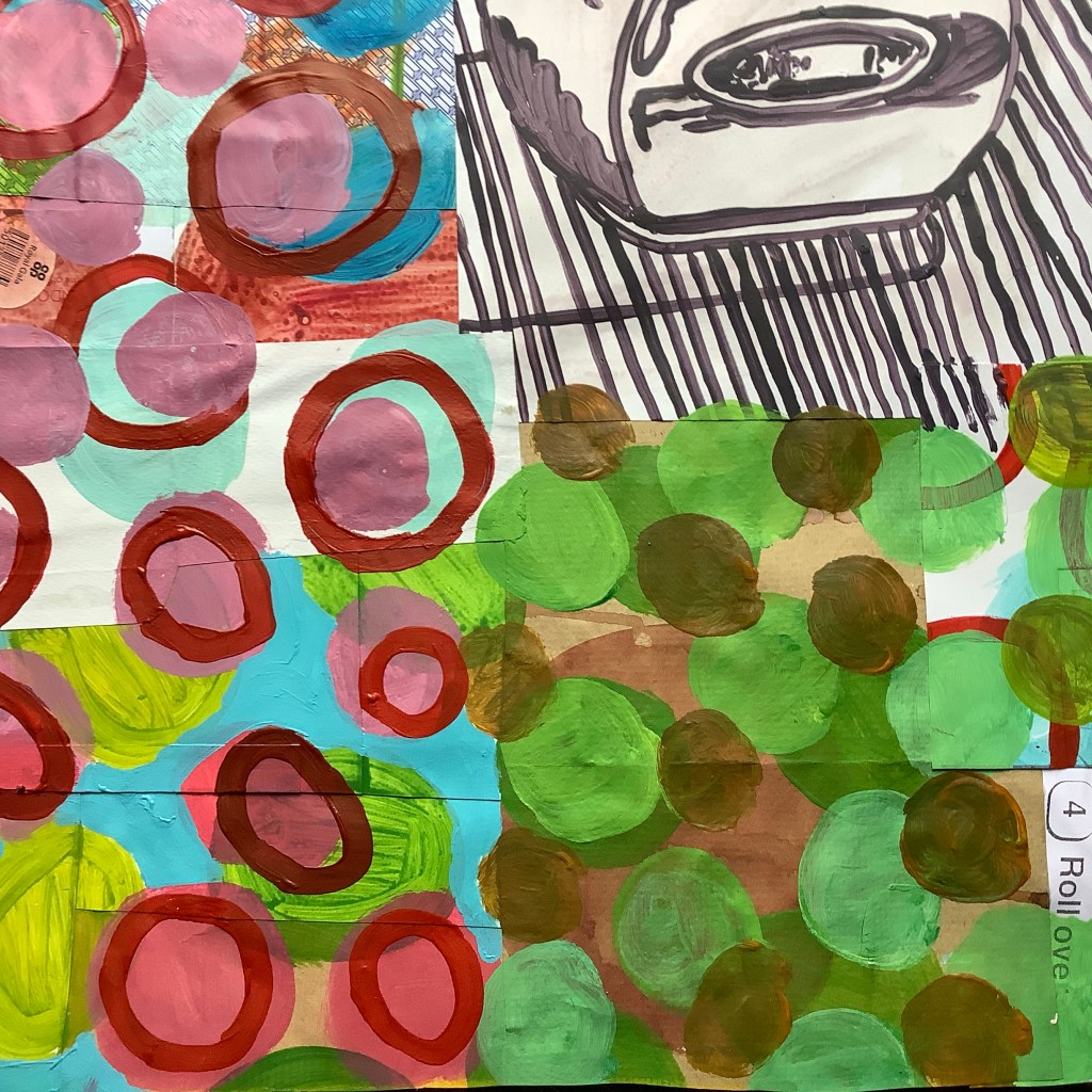 Acrylic paint on collaged paper patchwork 48cm x 48cm