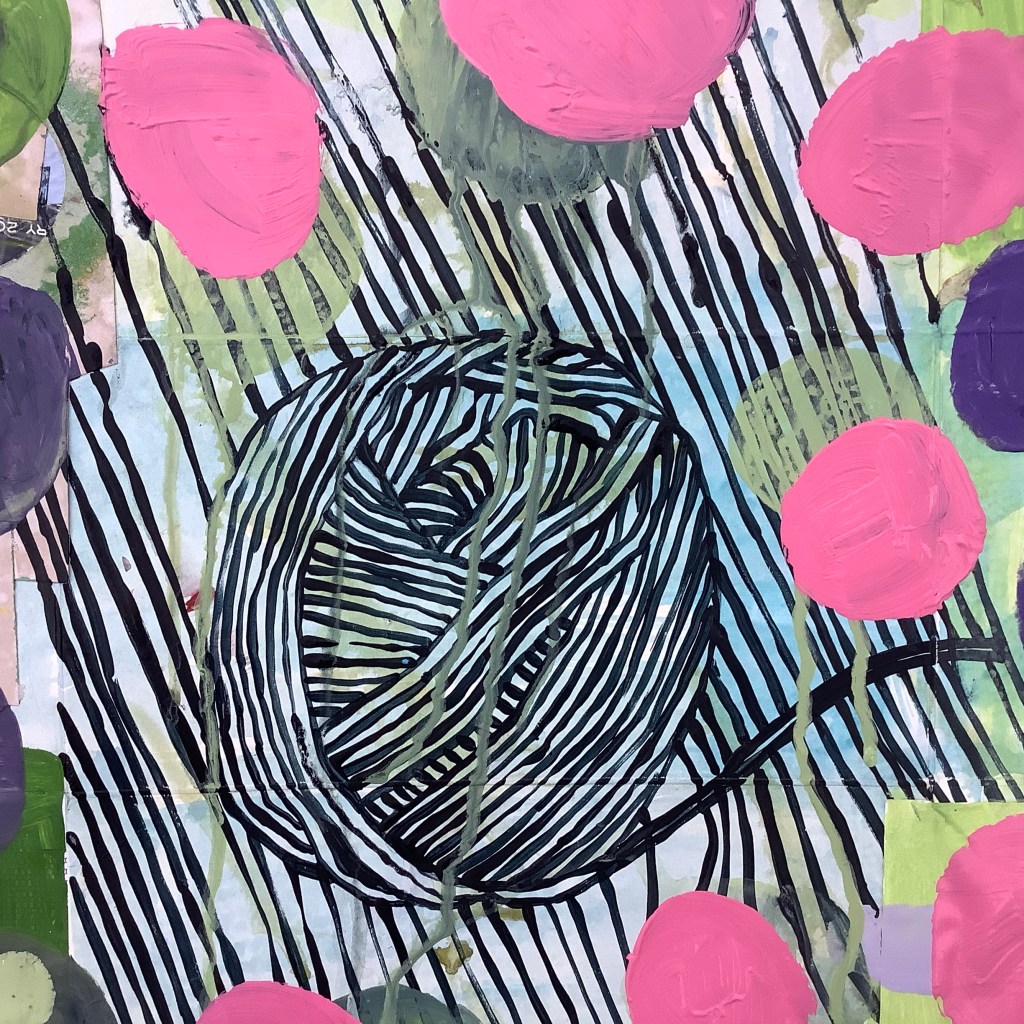 Acrylic paint on collaged paper patchwork 48cm x 48cm