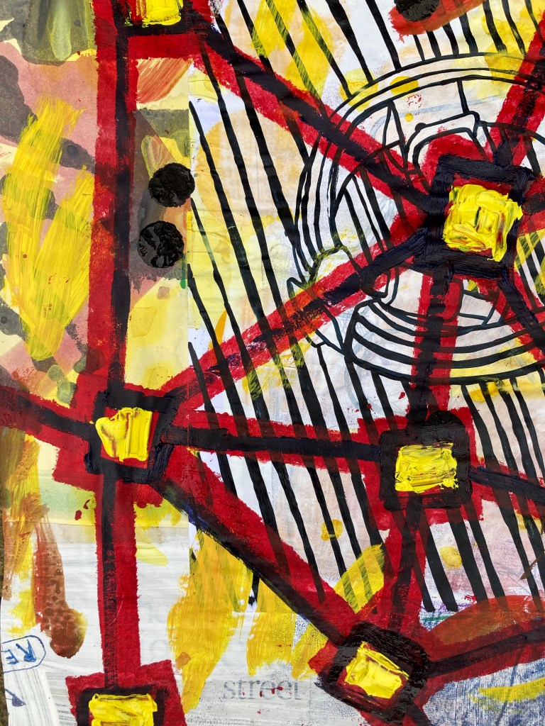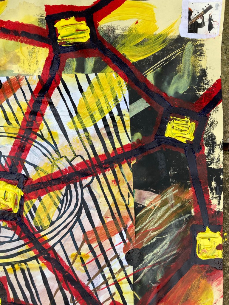 Acrylic paint and inks on collaged paper patchwork 48cm x 48cm