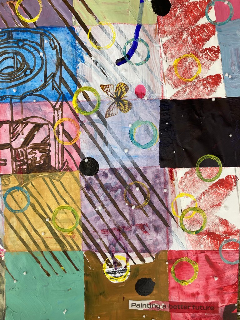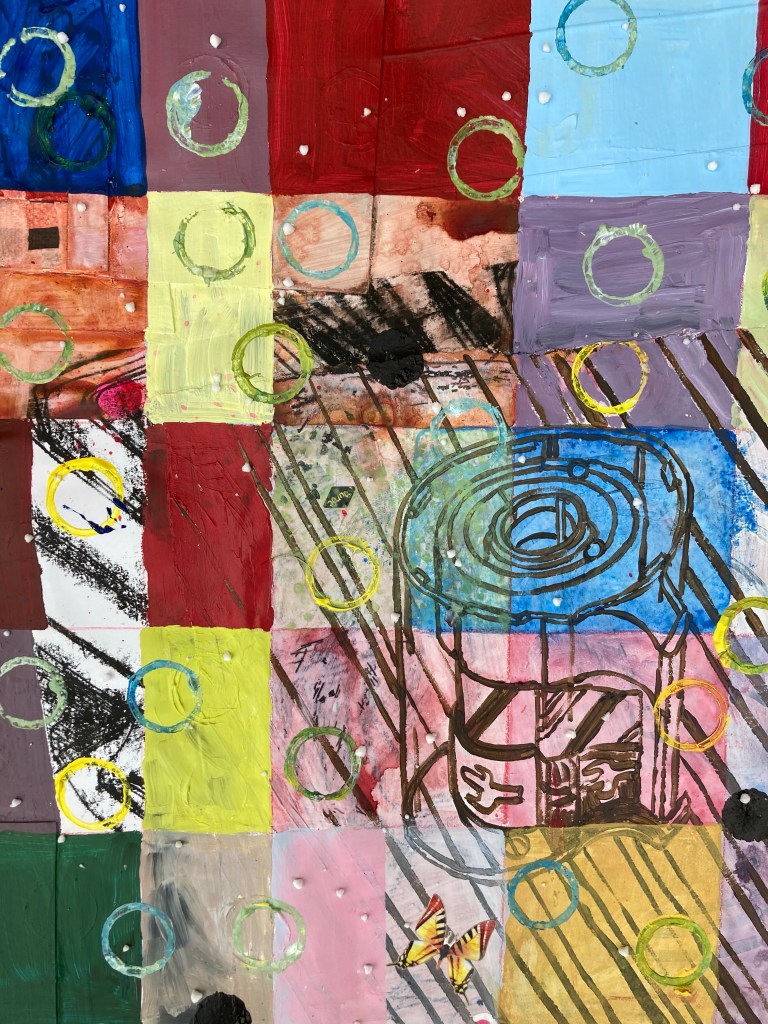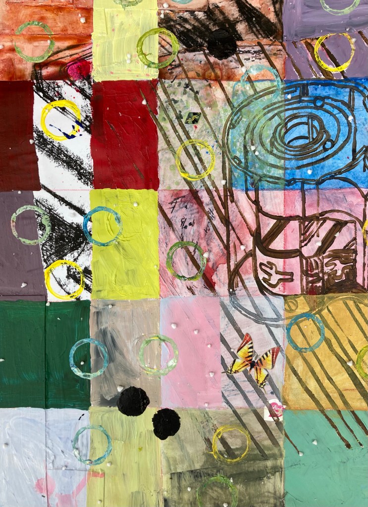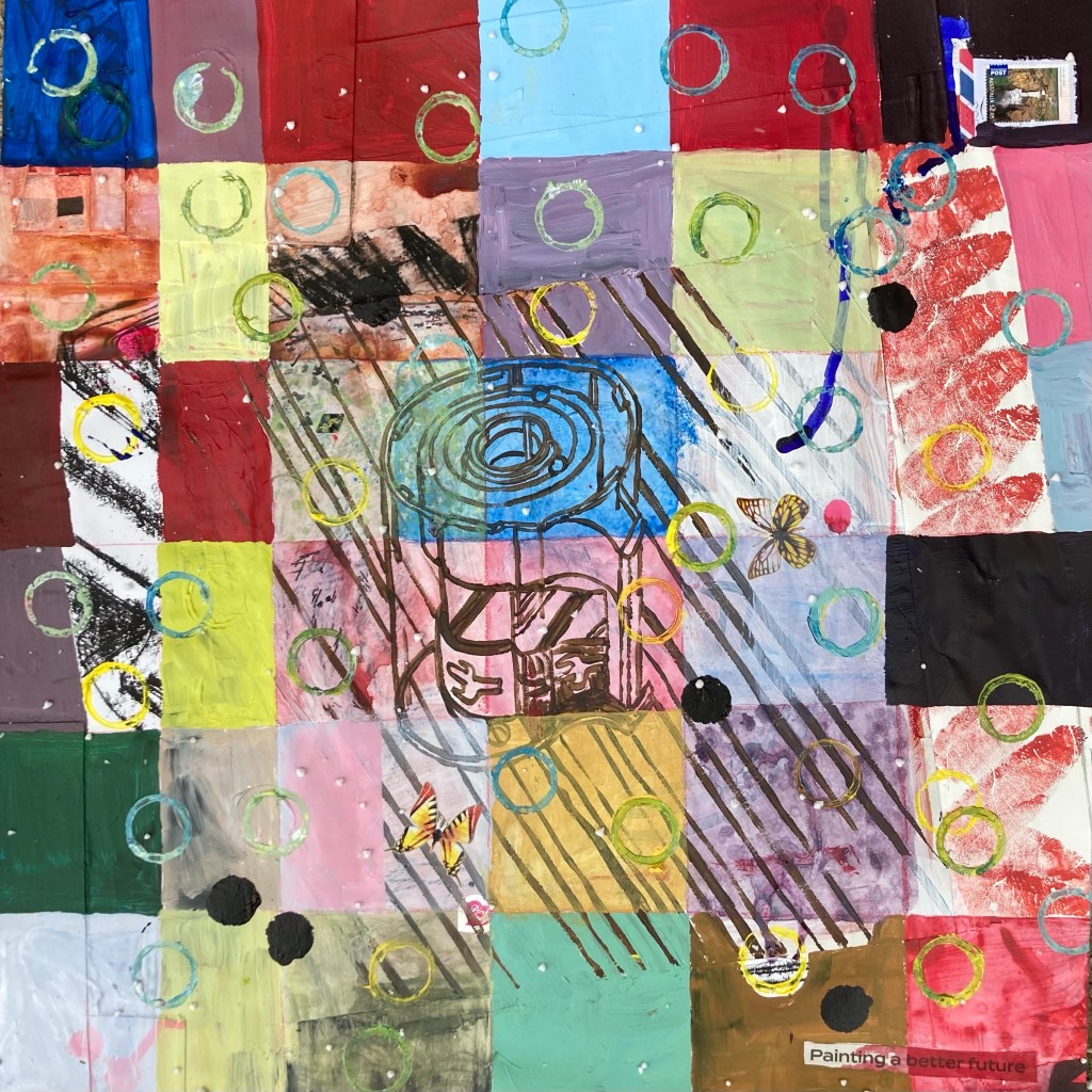 Acrylic paint on collaged paper patchwork 48cm x 48cm