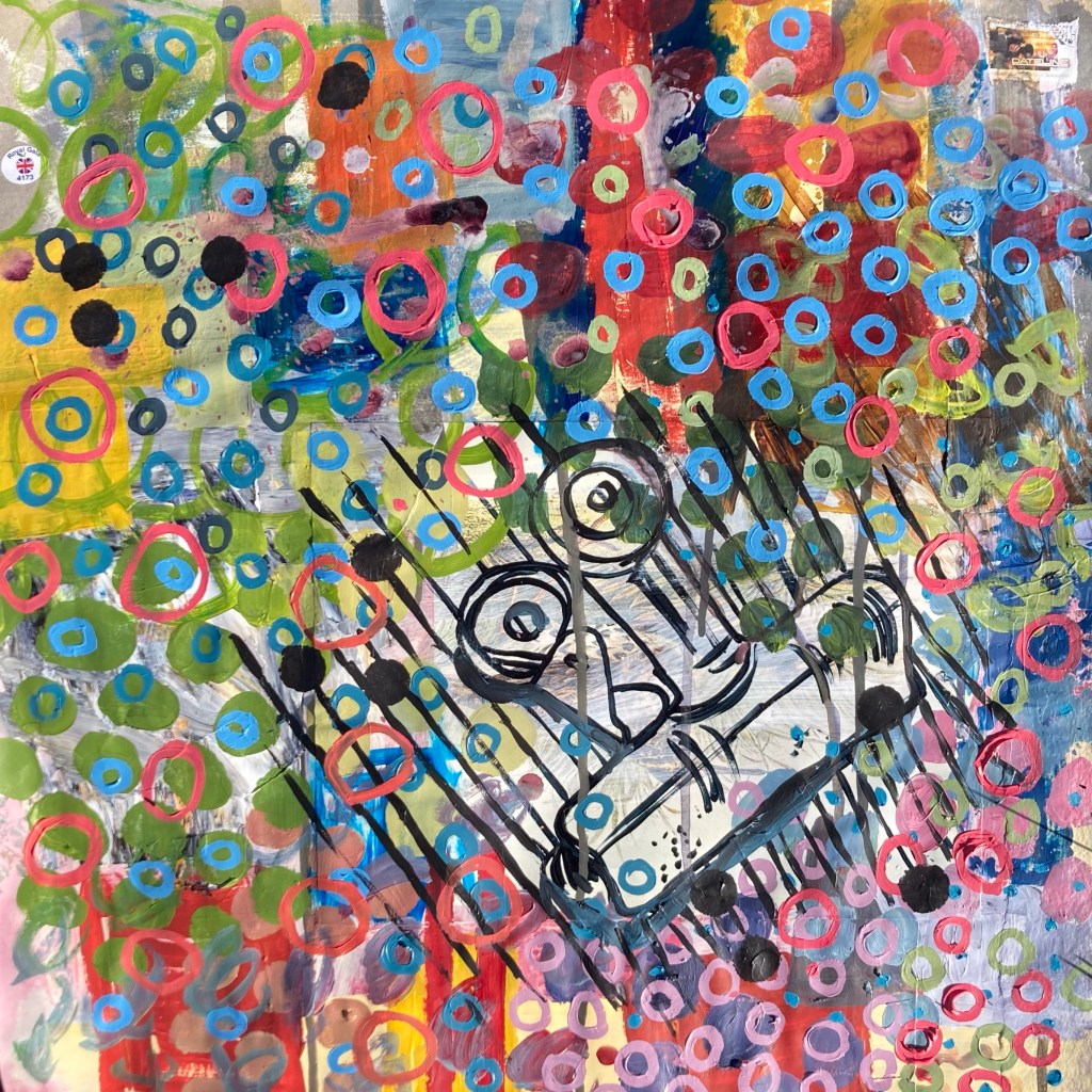 Acrylic paint on collaged paper patchwork 48cm x 48cm