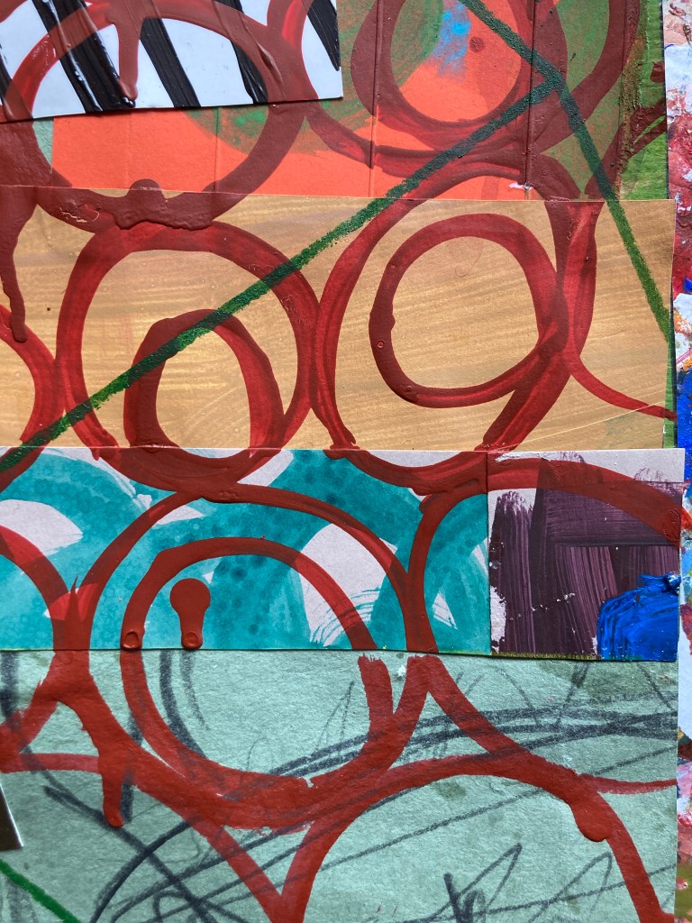 Acrylic paint on collaged paper patchwork with monoprint 48cm x 48cm