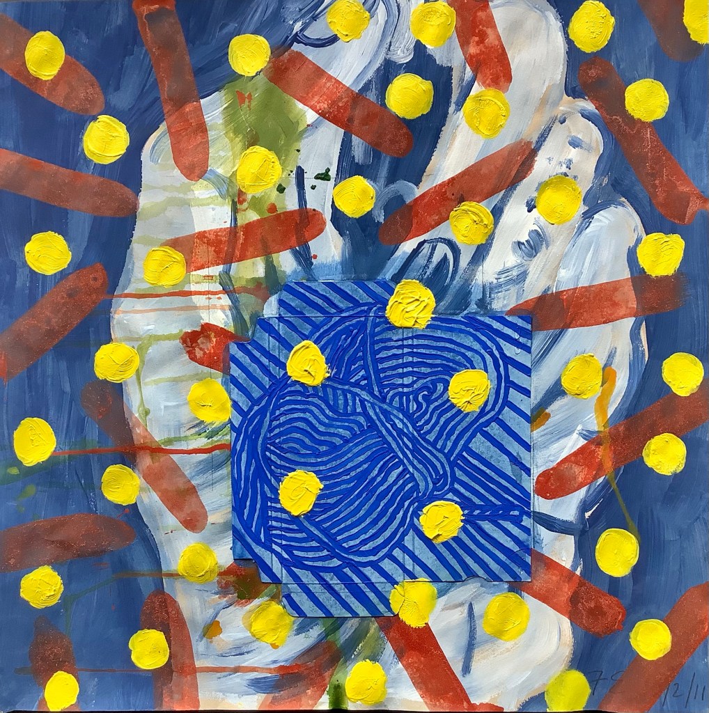 Acrylic paint on collaged paper patchwork with old painting 48cm x 48cm