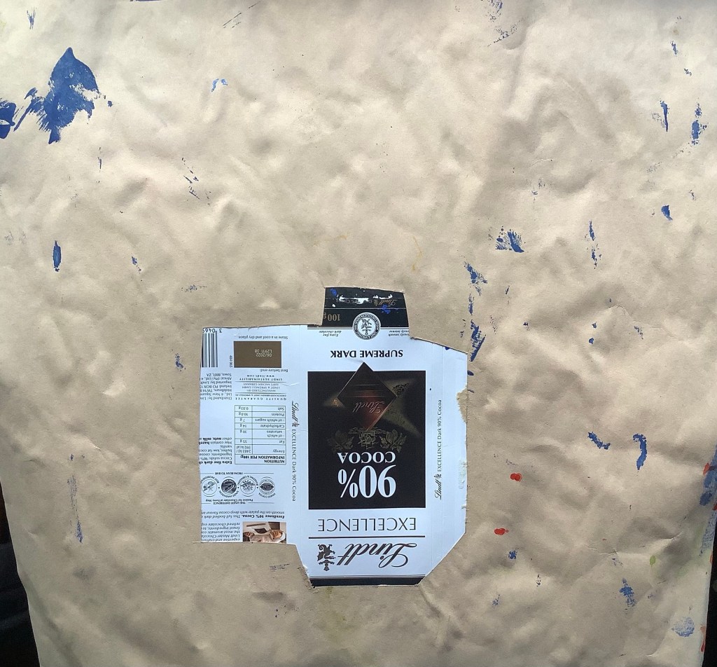 Acrylic paint on paper patchwork with old collage, drawing and painting 48cm x 48cm