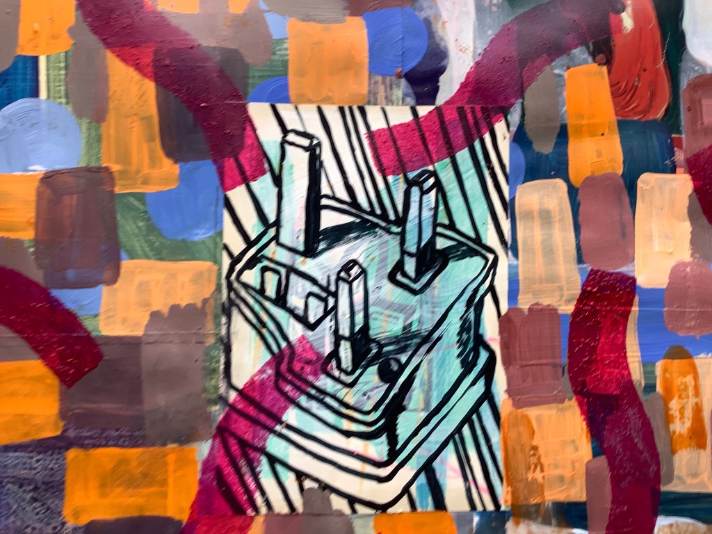 Acrylic paint on collaged paper patchwork 48cm x 48cm