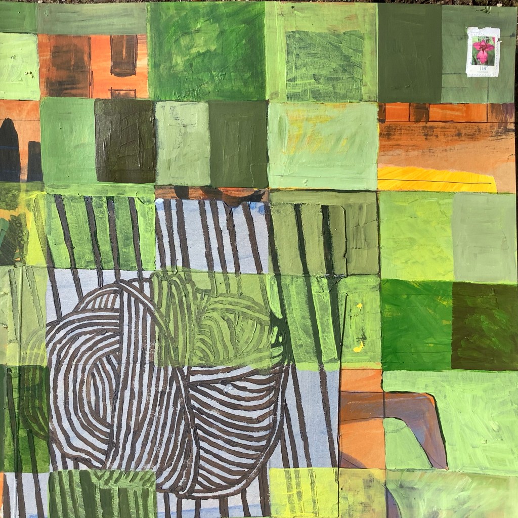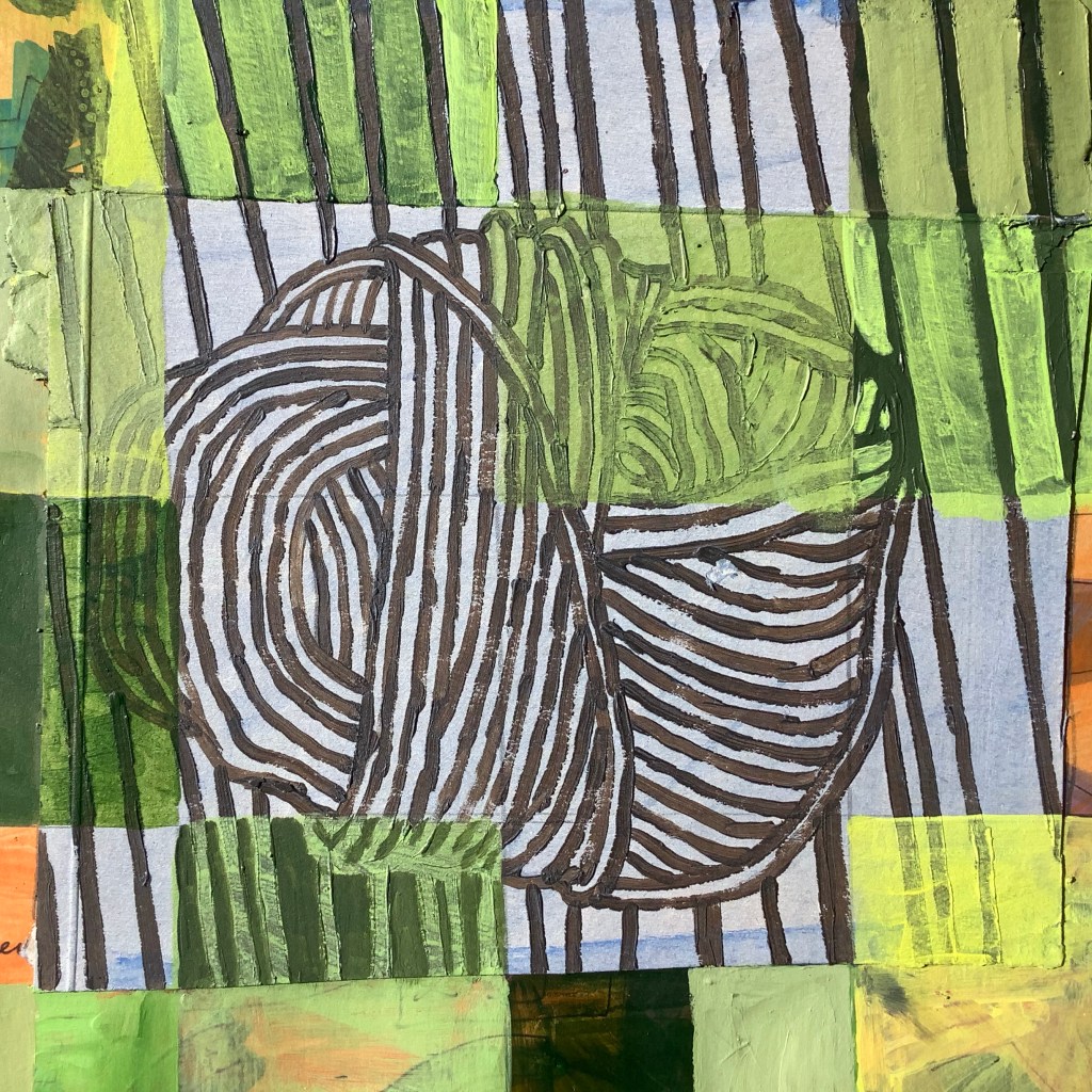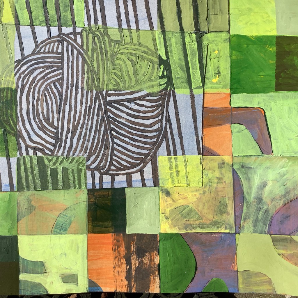 Acrylic paint on collage with retired drawing 48cm x 48cm