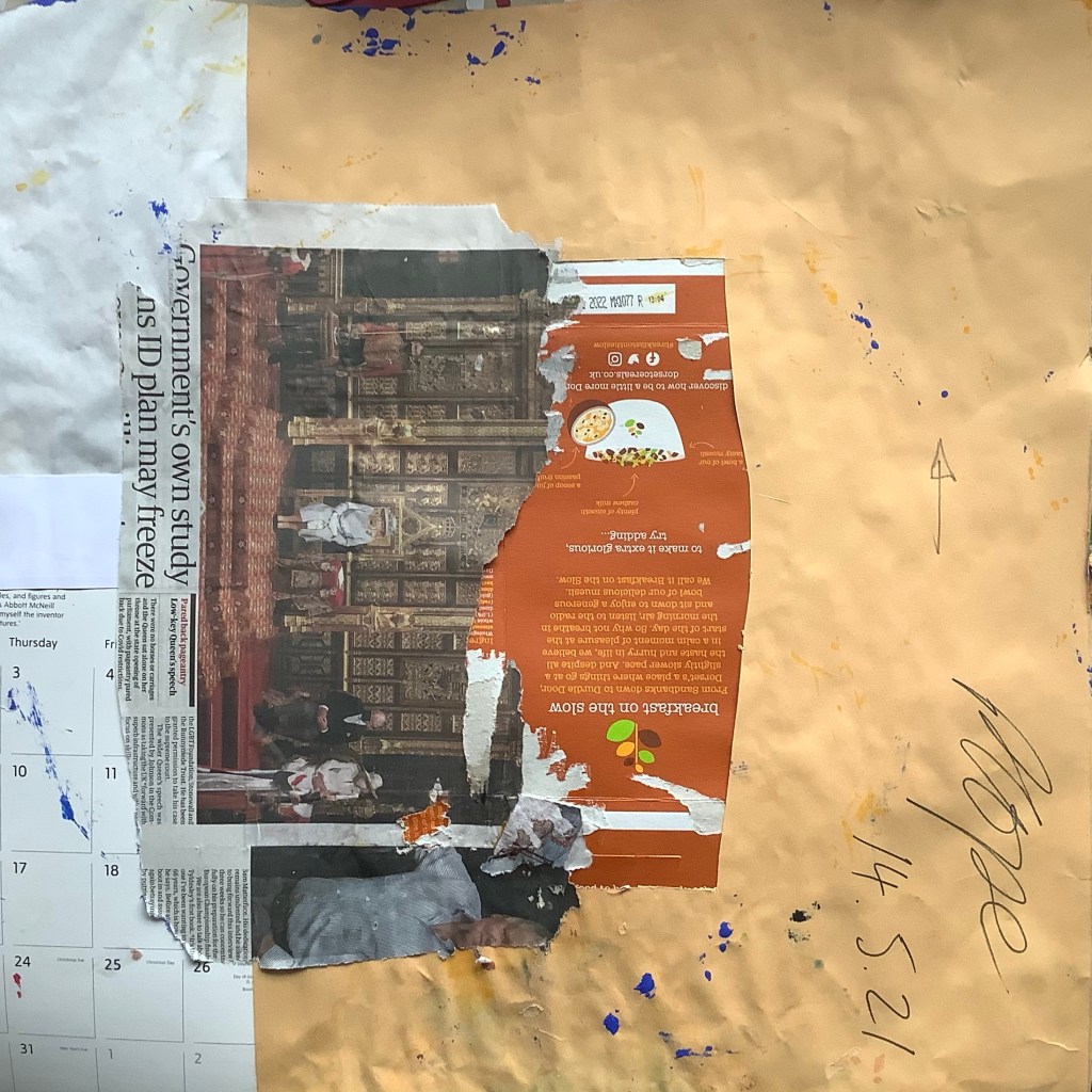 Acrylic paint on collaged paper patchwork with calendar 48cm x 48cm