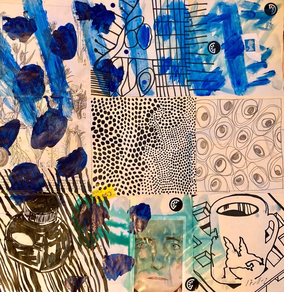 A new work in the continuing sequence. Making three or four a week now. Two more on Monday and Tuesday before #abstractadvent again. The shapes Chris has chosen don’t seem to be quite as festive as last year. Perhaps that is just how everyone feels now. Christmas seems a fairly abstract prospect from this perspective. Will we be able to see anyone? Has Omicron got other plans for us?