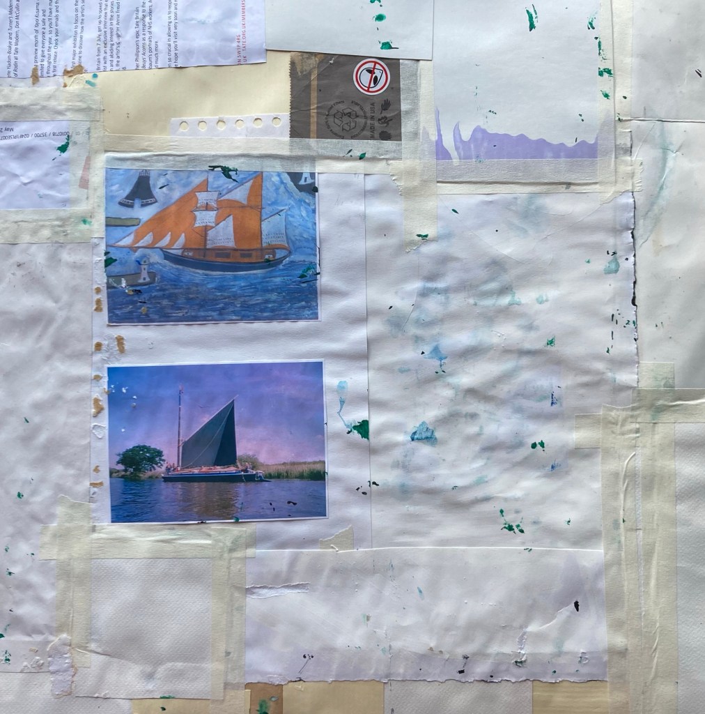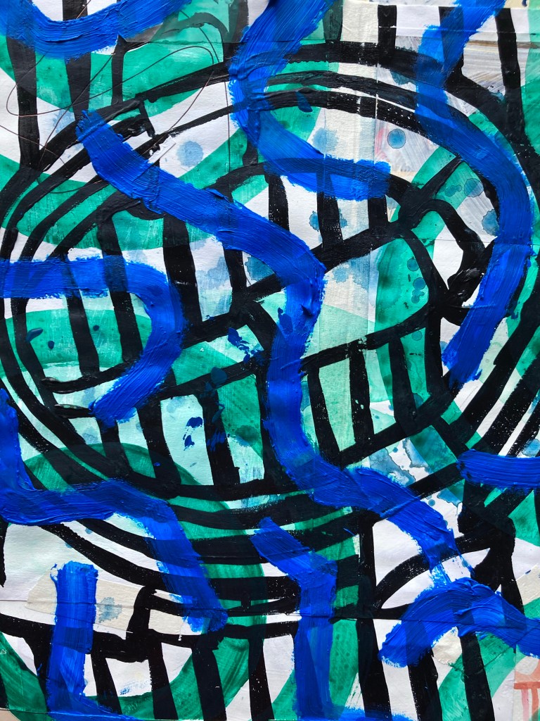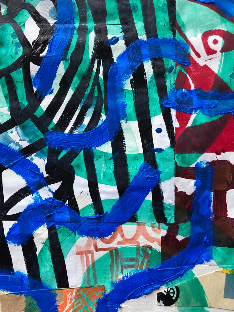 Acrylic paint on collaged paper patchwork 50 cm x 50 cm