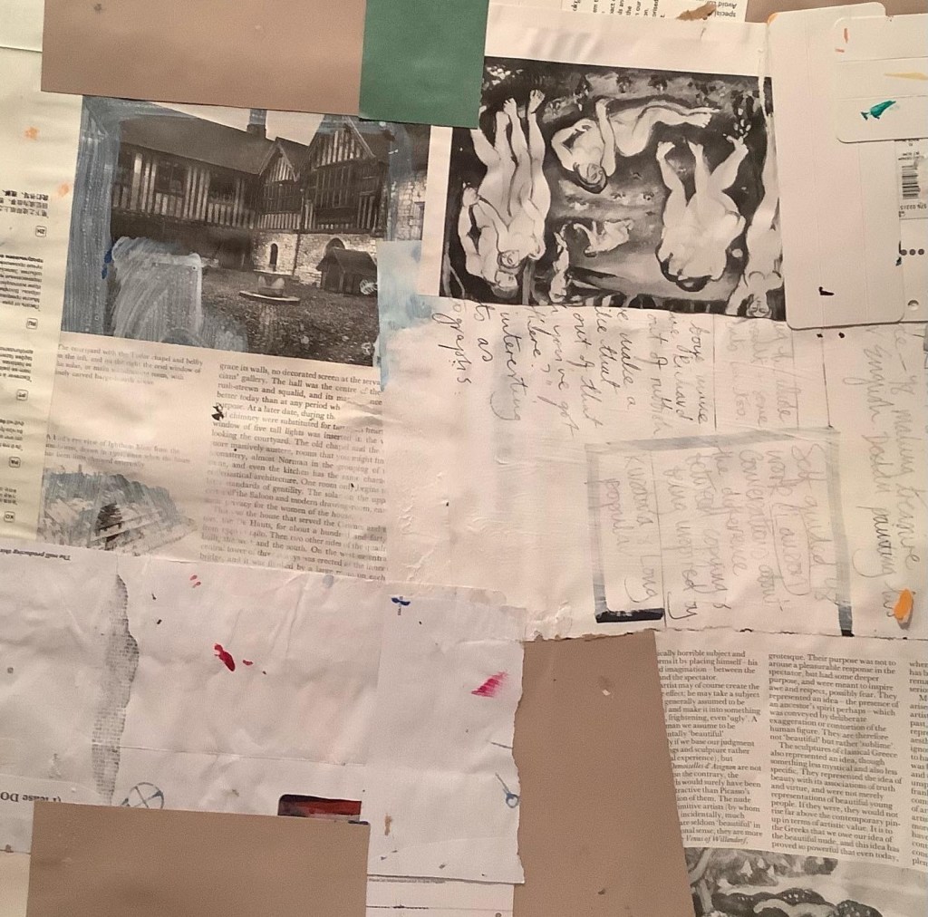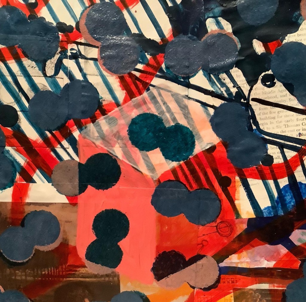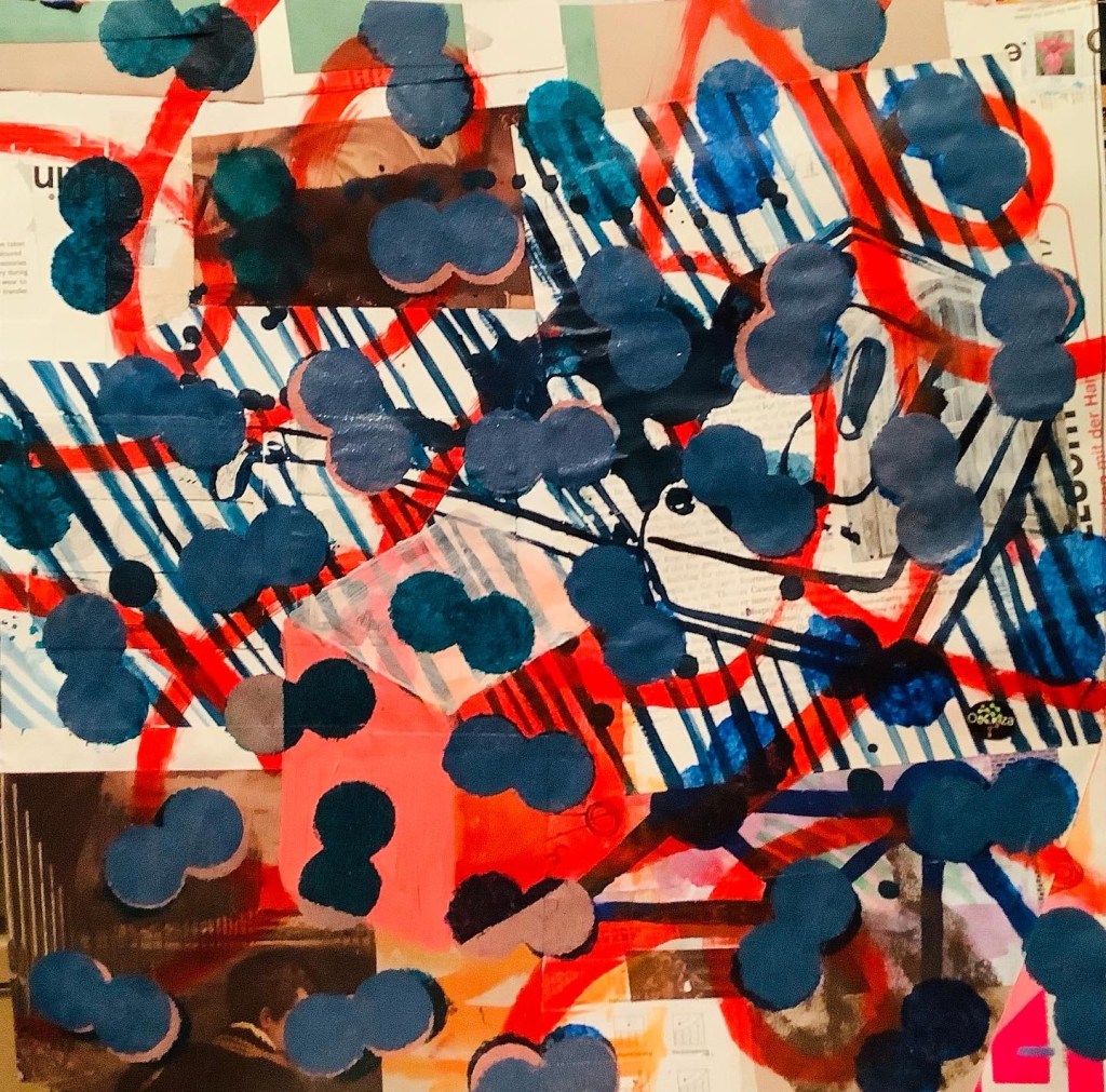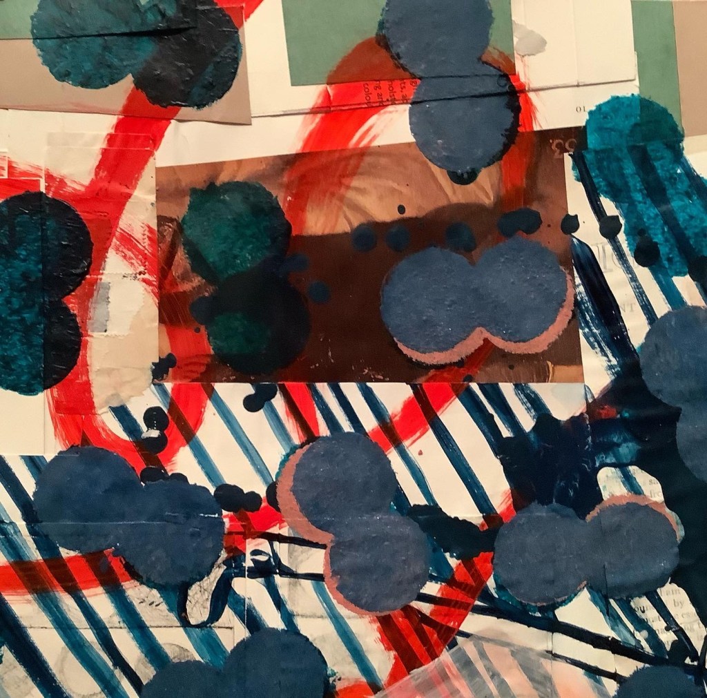 Acrylic paint on collaged paper patchwork 50 cm x 50 cm