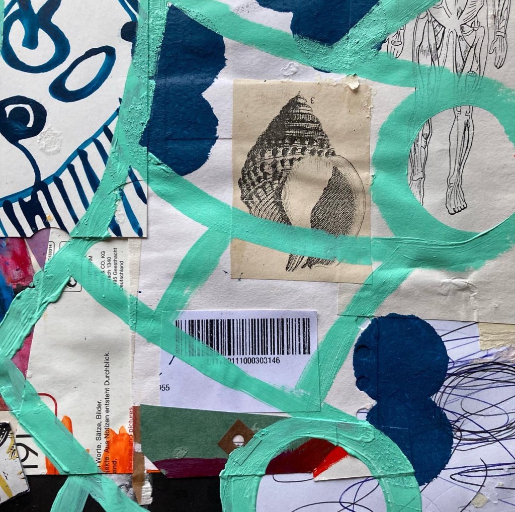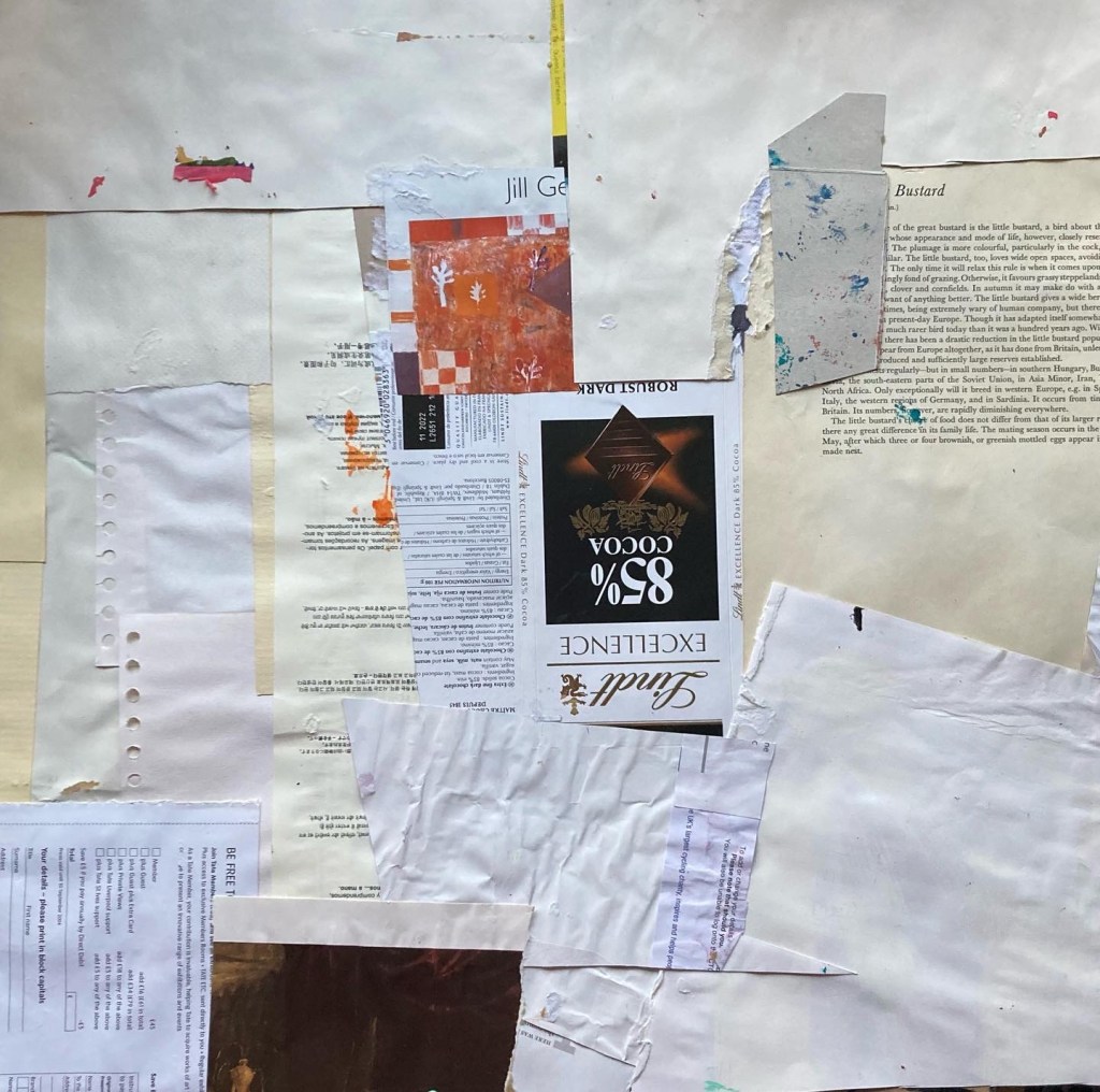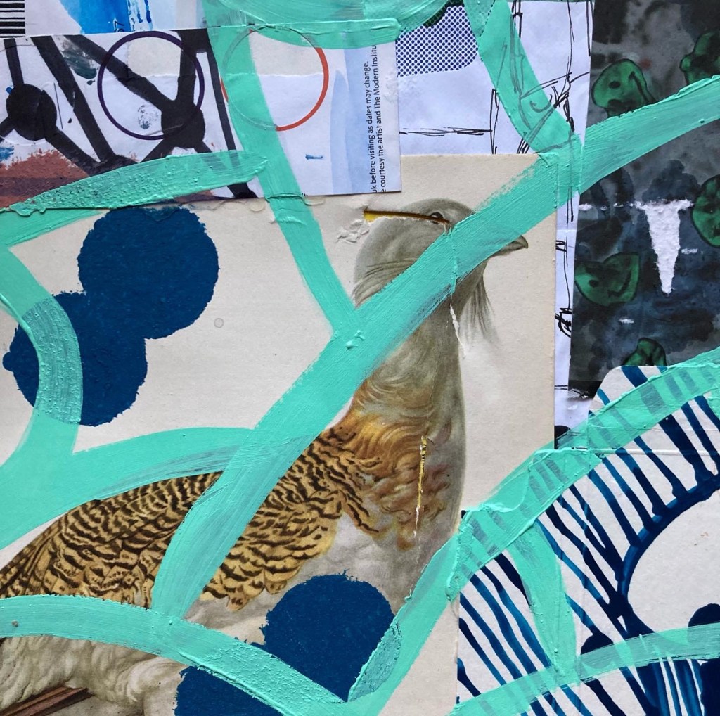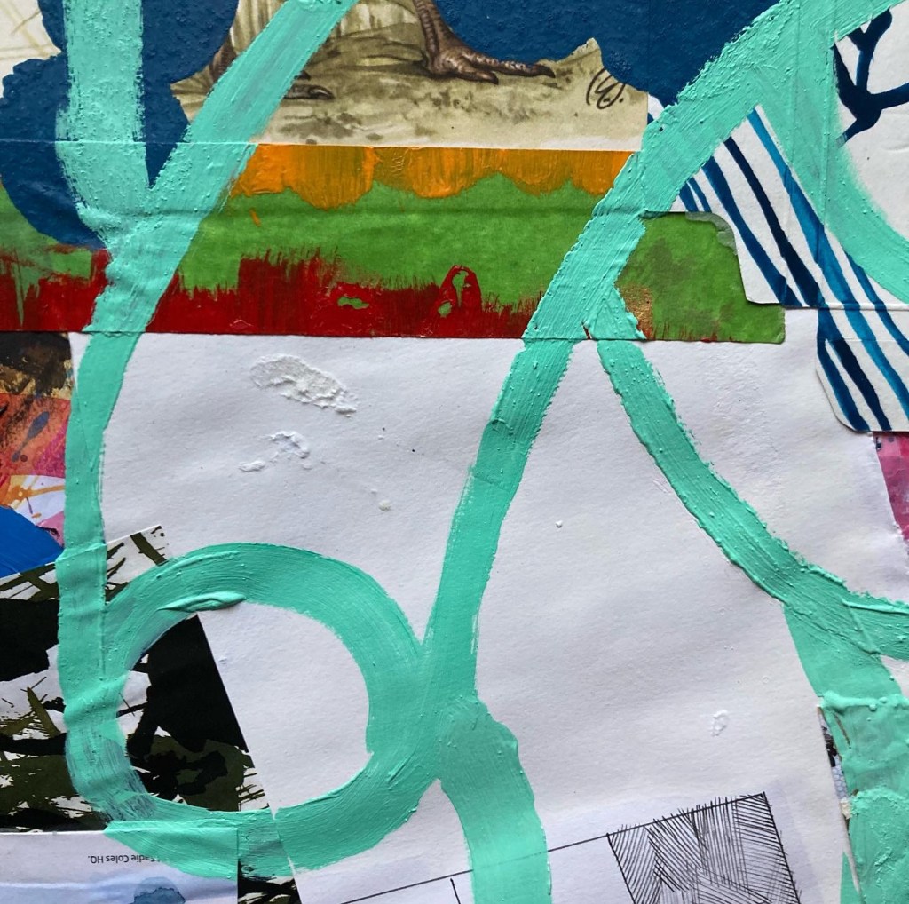 Acrylic paint on collaged paper patchwork 50 cm x 50 cm