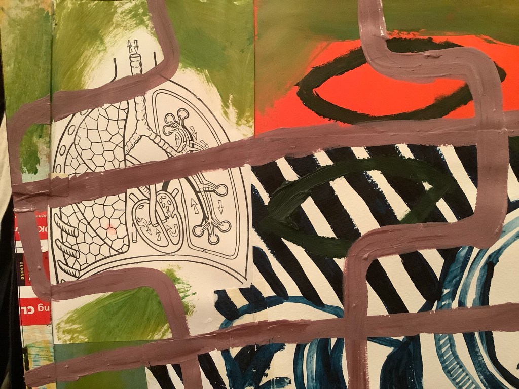 Acrylic paint on collaged paper patchwork 48cm x 48cm