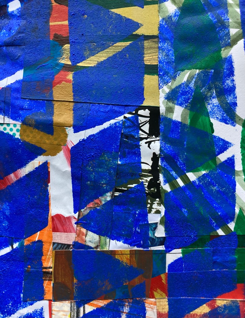 Acrylic paint on collaged paper patchwork 48cm x48cm