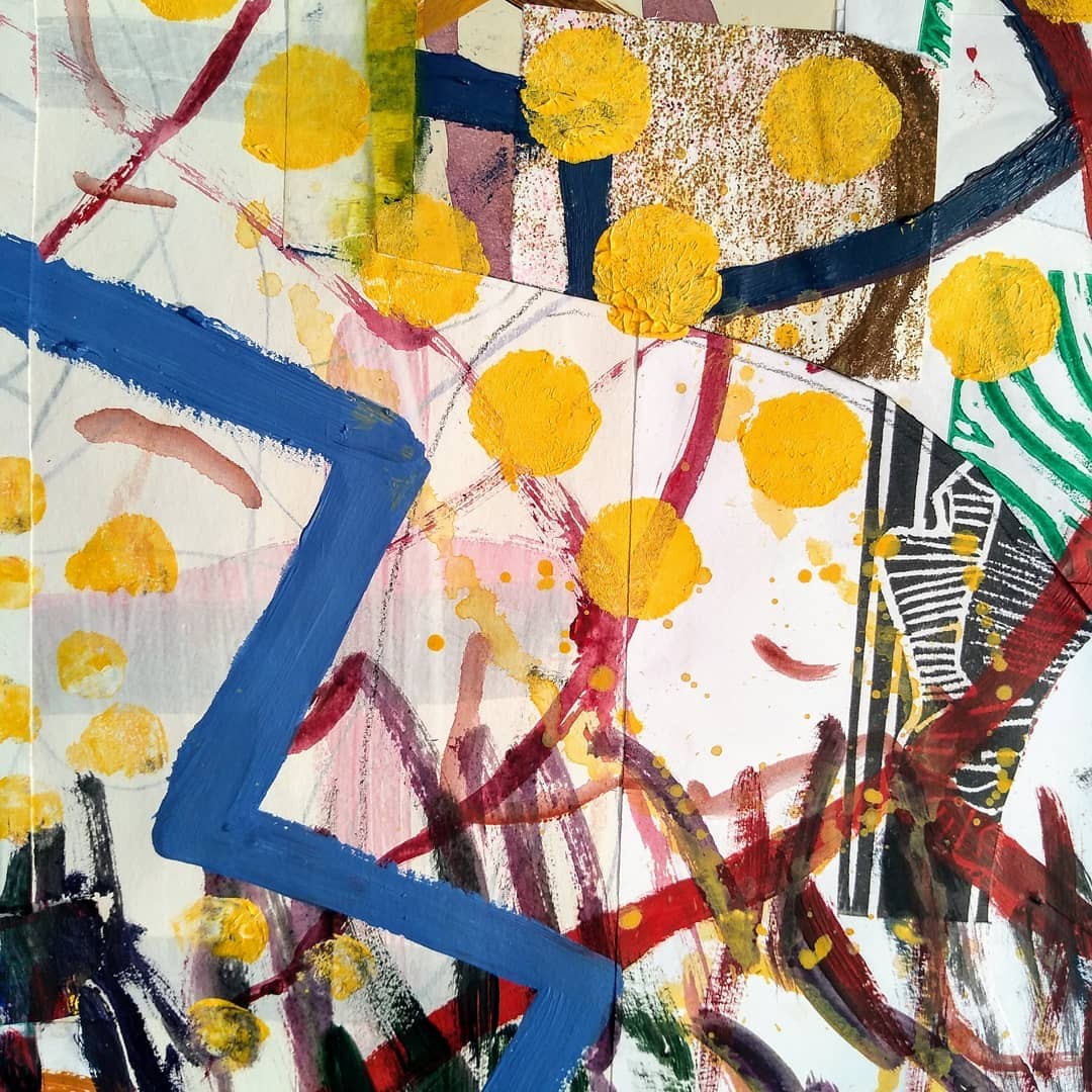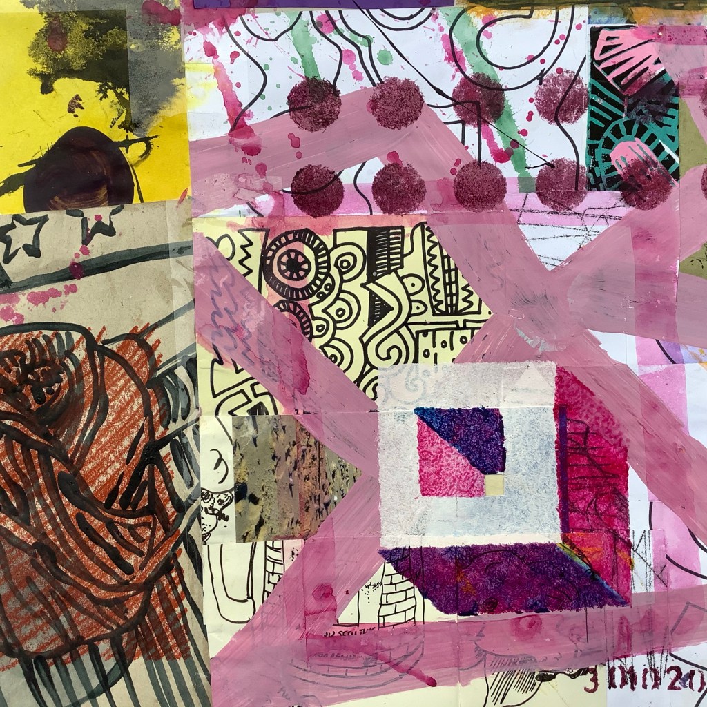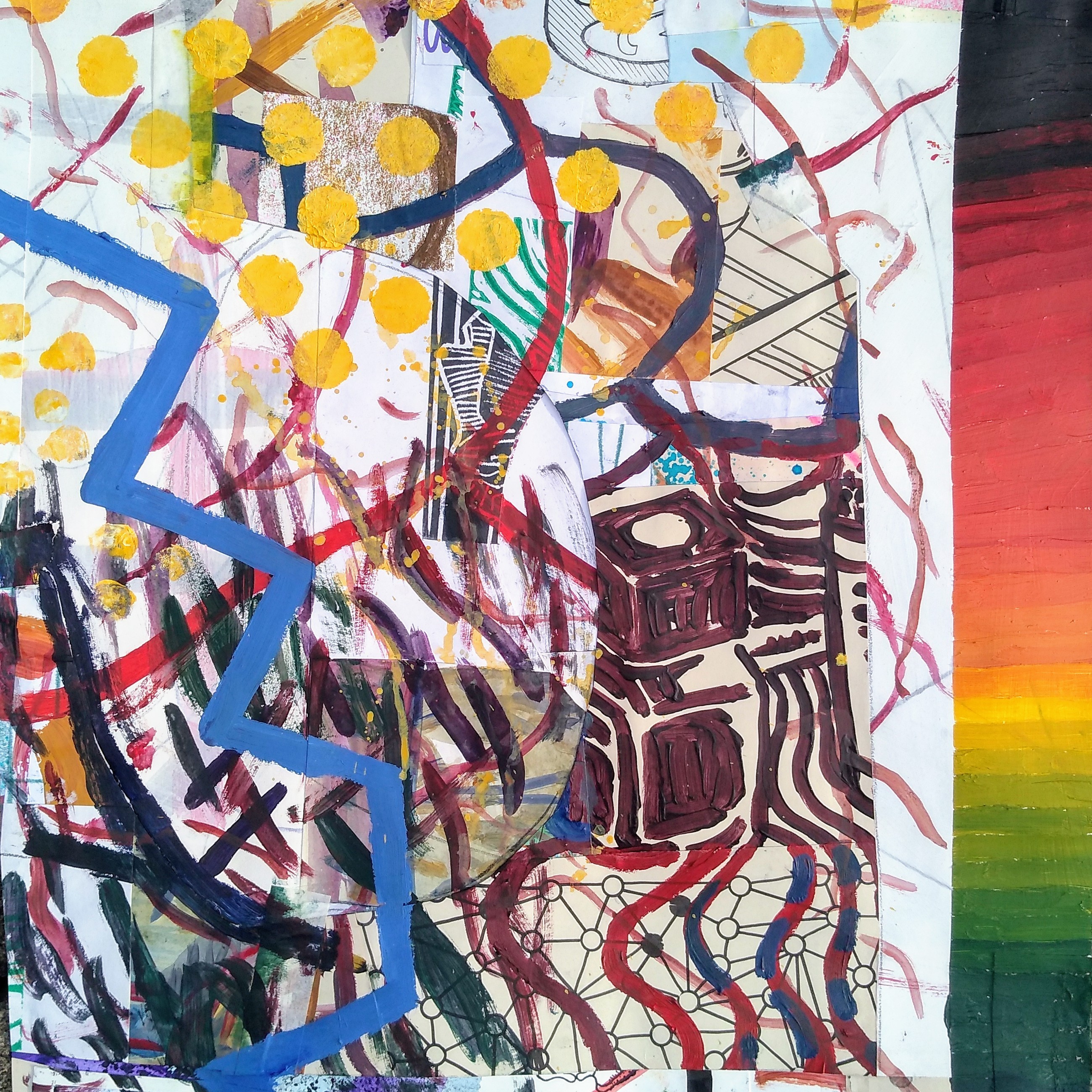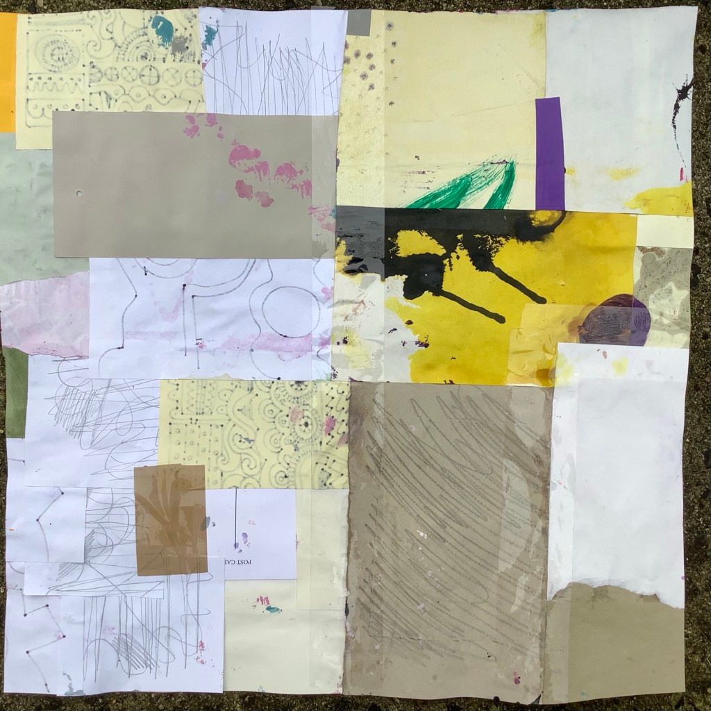 Mixed media on collaged paper patchwork. 43cm x 43cm