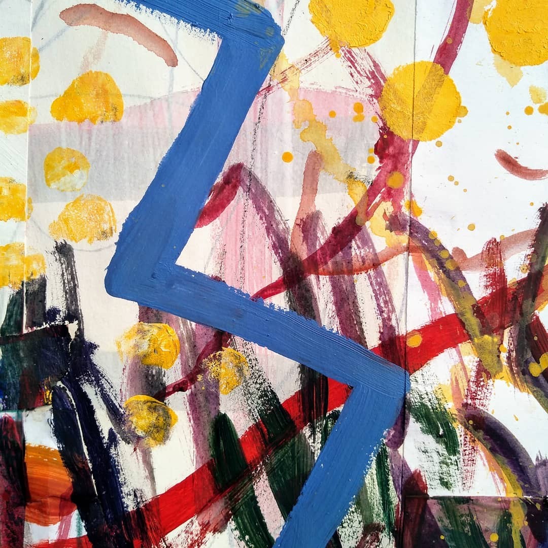 Playing with water soluble oil paints. The colour mixing down the side is an art room thing they won’t be doing for a while in school, I think. But homage to what I used to do. Layering, messing up the marks. There are relief print marks, monoprint, and fingerprints in these, at least.