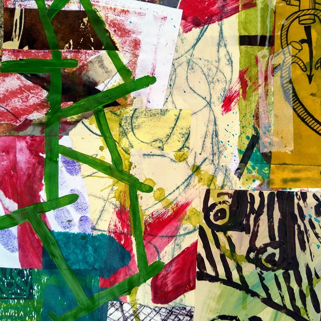 Mixed media on collaged paper patchwork. 43cm x 43cm